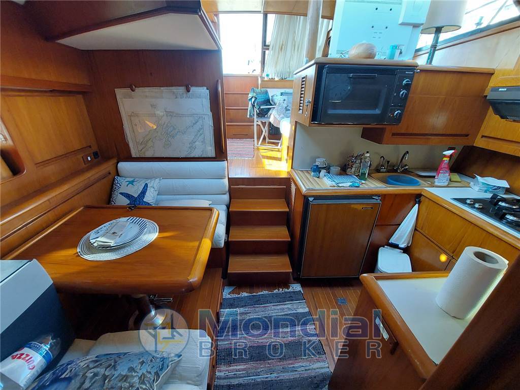 CABINA DI POPPA ARMATORIALE A TUTTO BAGLIO CON BAGNO PRIVATO, AMPIA DINETTE CON DIVANO SPAZIOSO, A DRITTA IL POSTO DI COMANDO INTERNO, SCENDENDO A SX TROVIAMO L'AMPIA CUCINA TUTTA ATTREZZATA E A DX DI FRONTE UNA DINETTE PER COLAZIONE O ALTRO,