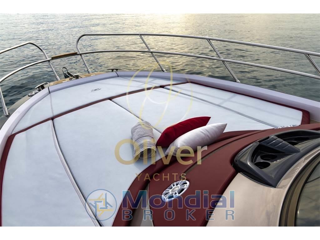 AIS (Raymarine), Allarme fumo/gas, Allarme motore, Allarme sentina, Alternatore, Ancora, Angolo barra, Antenna radar (Raymarine Q24D), Aspirazione dal Ponte delle Acque Sporche, Auto Dynamic Trim Interceptor, Autoclave, Auto-Trim, Batterie, Bussola, Camminamenti laterali in teak, Caricabatterie, Colorazione speciale, Comando motori elettronico (Raymarine), Computer di bordo, Contamiglia, Corrimano, Cronometro, Display (Raymarine), Doccia esterna, Ecoscandaglio (Raymarine), Elica di prua - bow thruster, Fissaggio dell’ancora, Flap elettrici, GPS (Raymarine), Impianto antincendio, Lavaggio catena, Lavandino nel Pozzetto, Log (Raymarine), Luci di cortesia, Luci di navigazione, Luci subacquee, Monitor batteria, Monitor dei consumi, Parabordi, Passerella, Piattaforma, Pilota automatico (Raymarine), Plotter (Raymarine), Plotter con antenna GPS (Raymarine), Pompa di sentina automatica, Pompa di sentina elettrica, Pompa di sentina manuale, Ponte in teak, Porta ingresso, Pozzetto Teak, Presa 220V banchina, Presa acqua banchina, Quadro comandi, Radar, Radio VHF (Raymarine), Salpa Ancore Elettrico, Scaletta da bagno, Sedile Copilota, Tavolo pozzetto, Tromba