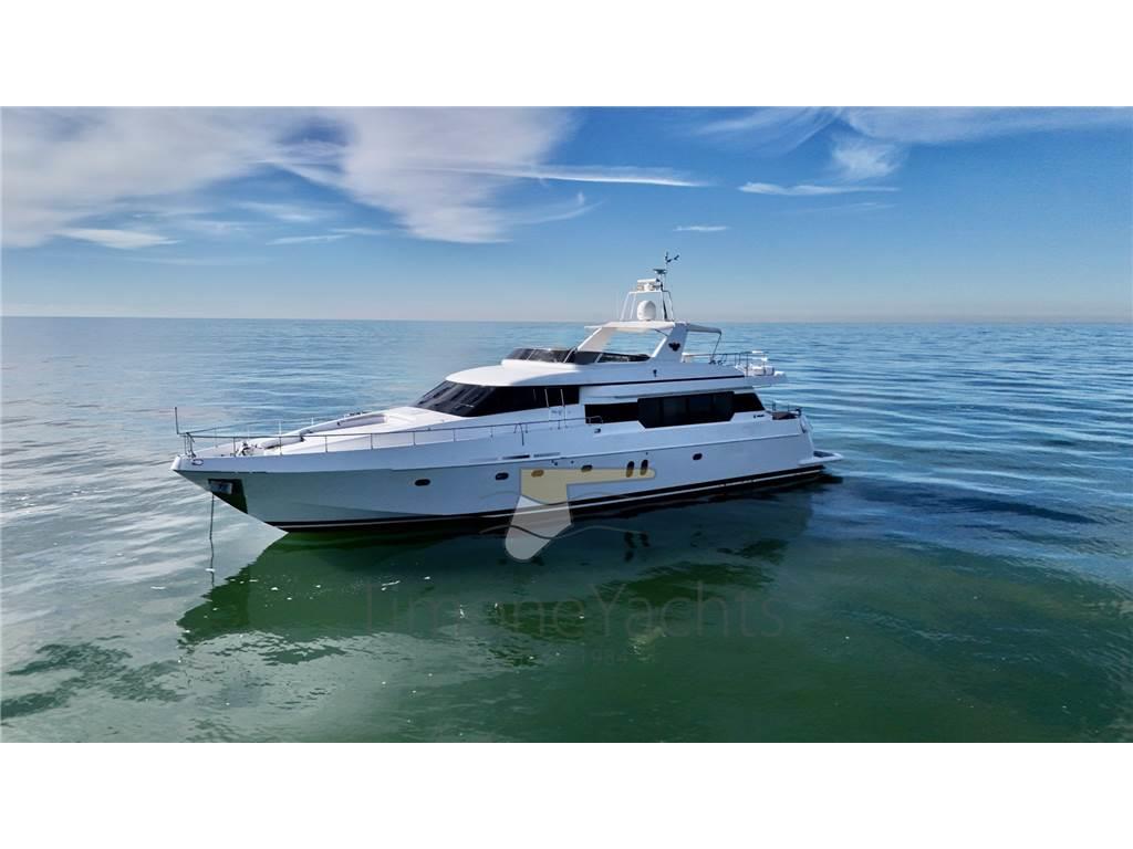 AIS, Auto-Trim, Camminamenti laterali in teak, Caricabatterie, Comando motori elettronico, Contametri catena, Doccia esterna, DSC vhf, Ecoscandaglio, Elica di prua - bow thruster, Flap elettrici, GPS, Gruette per tender su fly, Impianto antincendio, Indicatori Flaps, Interfono, Joystick, Lavaggio catena, Passerella, Pilota automatico, Plotter, Porta laterale, Pozzetto Teak, Presa 220V banchina, Presa acqua banchina, Radar, Radio VHF, Sistema Depurazione acque nere, Stabilizzatori (Seakeeper), Stazione vento, Tavolo pozzetto, Tender, Tromba, Winch tonneggio di poppa