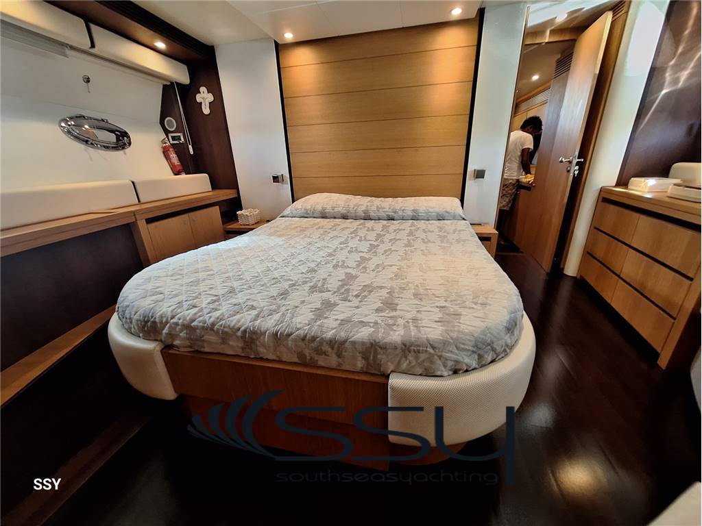 - Ampio e confortevole pozzetto climatizzato, con divano in tessuto Sunbrella, tavolo telescopico ampliabile, Smart TV Sharp Aquos a scomparsa, impianto Hi-Fi Fusion MSAV650,mobile bar attrezzato con lavello, piano cottura Schott in vetroceramica e frigorifero a cassetto Isotherm;