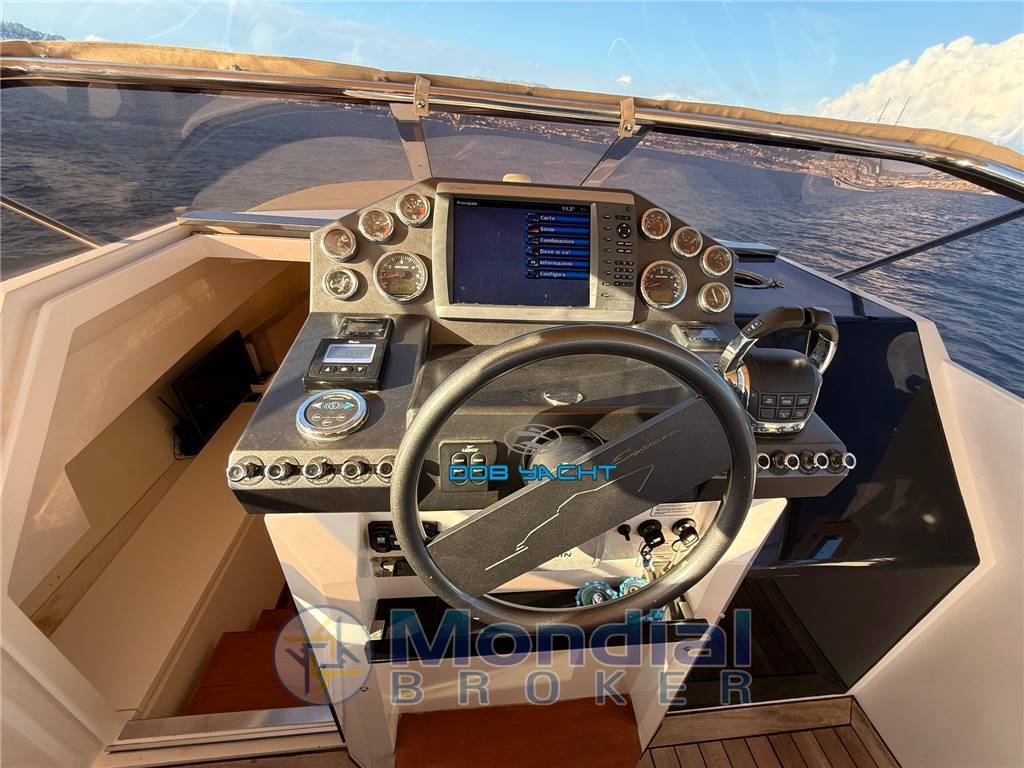 Strumentazione: strumenti motore VOLVO PENTA analogici e digitali con doppio display, manette elettroniche con SINGLE LEVEL, gps GARMIN 4012 interfacciato con profondimetro, flaps LENCO, elica di prua SIDE POWER, aspiratori, bussola, luci via, tromba, stereo FUSION MSRA70 con casse.