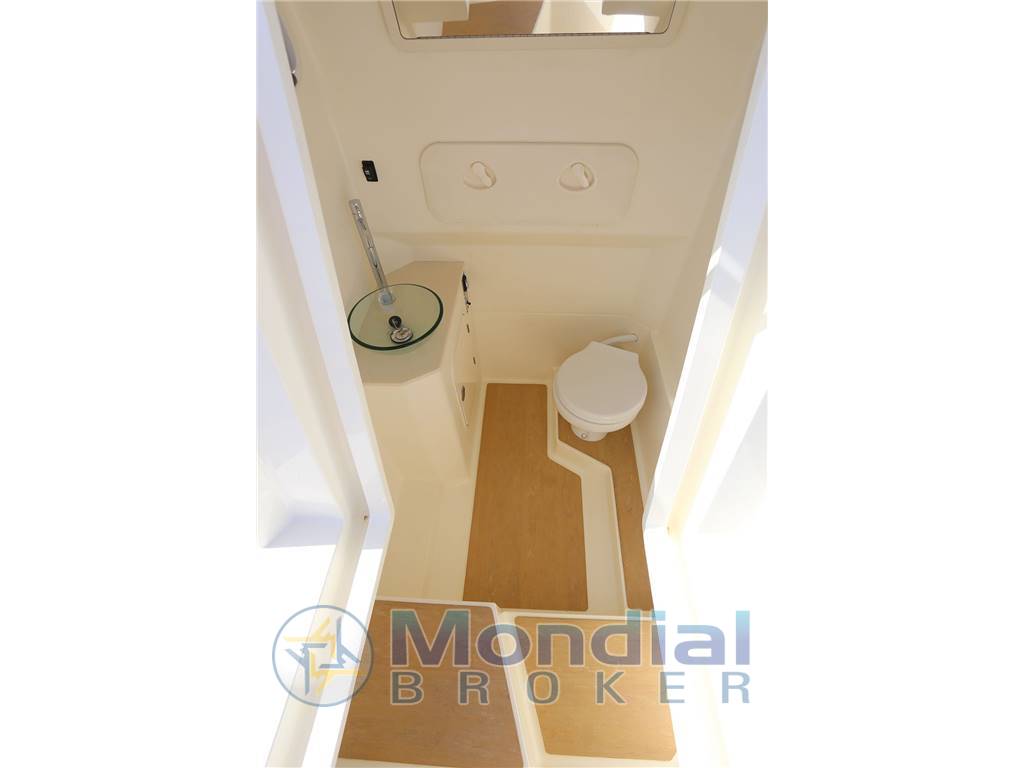 Principale novità di Tempest 900 OPEN è la presenza di una porta rivolta verso prua che consente di avere accesso ad un'area sottocoperta. L'area può essere impiegata come gavone di stivaggio a tutta altezza o, in alternativa, può essere allestita con wc marino (completo di serbatoio acque nere dedicato), specchiera interna in A-look, rivestimento piano lavabo in Corian, lavabo in vetro completo di rubinetto, rivestimento calpestio in flexiteek e tasche portaoggetti. Questo optional consente di avere una cabina completa e funzionale per le tipiche esigenze di un day cruiser.