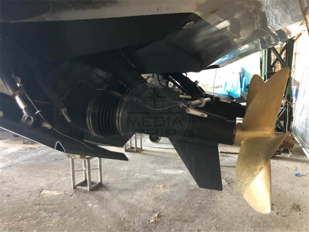Ancora, Elica di prua - bow thruster, Impianto antincendio, Passerella, Piattaforma, Pompa di sentina elettrica, Scaletta da bagno, Tavolo pozzetto, Tender, Winch.