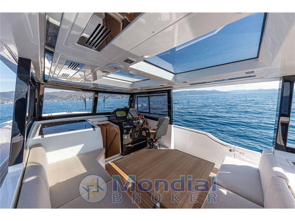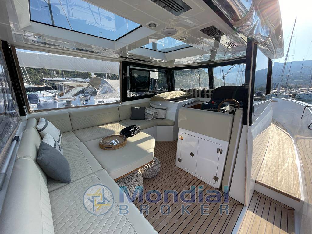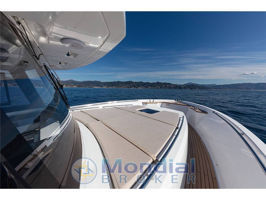 Plancetta sommergibile tender-lift & Passerella a scomparsa Opac Mare, Winch tonneggio di poppa, tendalino elettrico telescopico, panca in pozzetto di poppa con tavolo regolabile in Teak, convertibile ad ampio prendisole. Full Teak pozzetto e calpestio passi avanti, Cucina esterna con Fuochi induzione, lavello, frigo a cassetti, piano di preparazione, stipi vari realizzati in teak. Elica di prua, Winch tonneggio di prua. Sovrastruttura solida con tetto calpestabile (realizzata in firbra di carbonio), Comodo quadrato protetto con divaneria ad elle e tavolo in teak, regolabile in altezza, opposto alla consolle di governo, enclosure totale tendalini strataglass, impianto a/c del pozzetto esterno (con pompa di calore) attraverso diffusori/fan coils posti nel tettuccio – Dissalatore Zen 100