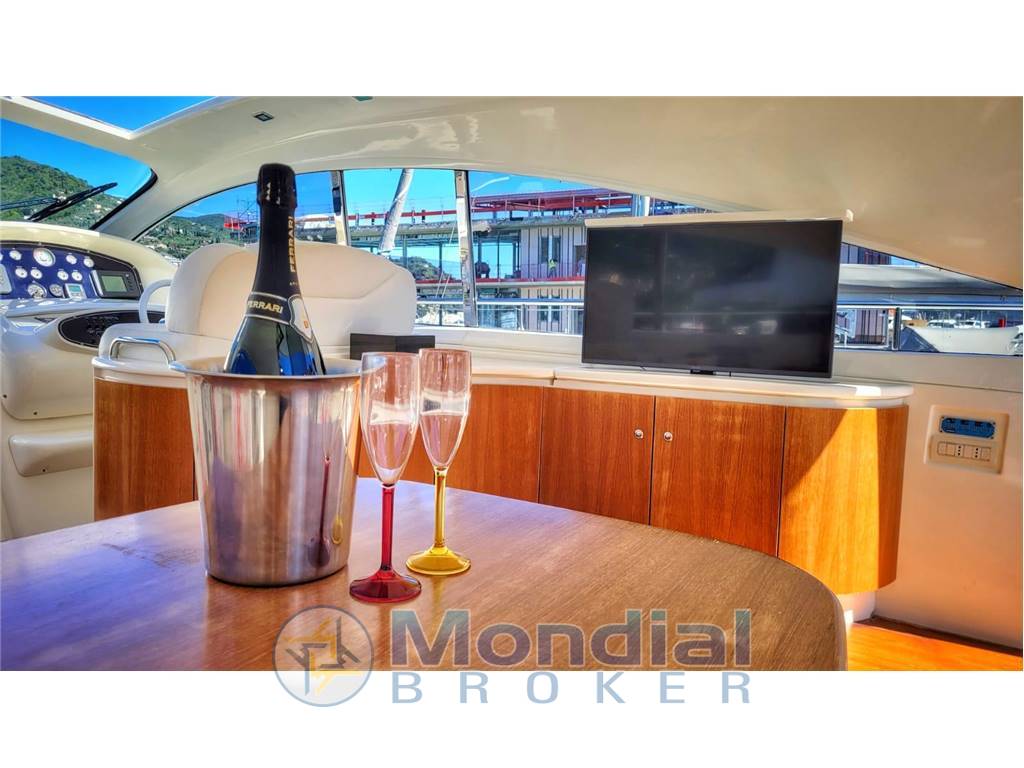 Hard top elettrico apribile – Frigorifero per vino – Frigo in salone – Televisore a scomparsa – Cucina a induzione con lavabo nel salone – Televisori – Microonde – Lavastoviglie – Cucina completa – Lavatrice – Passerella – Tender – Caricabatterie – Generatore Kohler 16kW – Inverter – Apertura vano motore elettrica – Gavone nel pozzetto con apertura elettrica – Boiler – Ice maker – Cassa acque nere – Allarmi di sentina – Aria condizionata con fan coil in tutti i locali – Frigo – Freezer – Doccia prua – Telecomandi Fusion Bluetooth – 3 zone separate impianto stereo – 4 subwoofer – Alzacofani elettrici – TV nuova in salone a scomparsa elettrica – Braccio elettrico televisione sala – Lavatrice nuova – Lavastoviglie nuova
