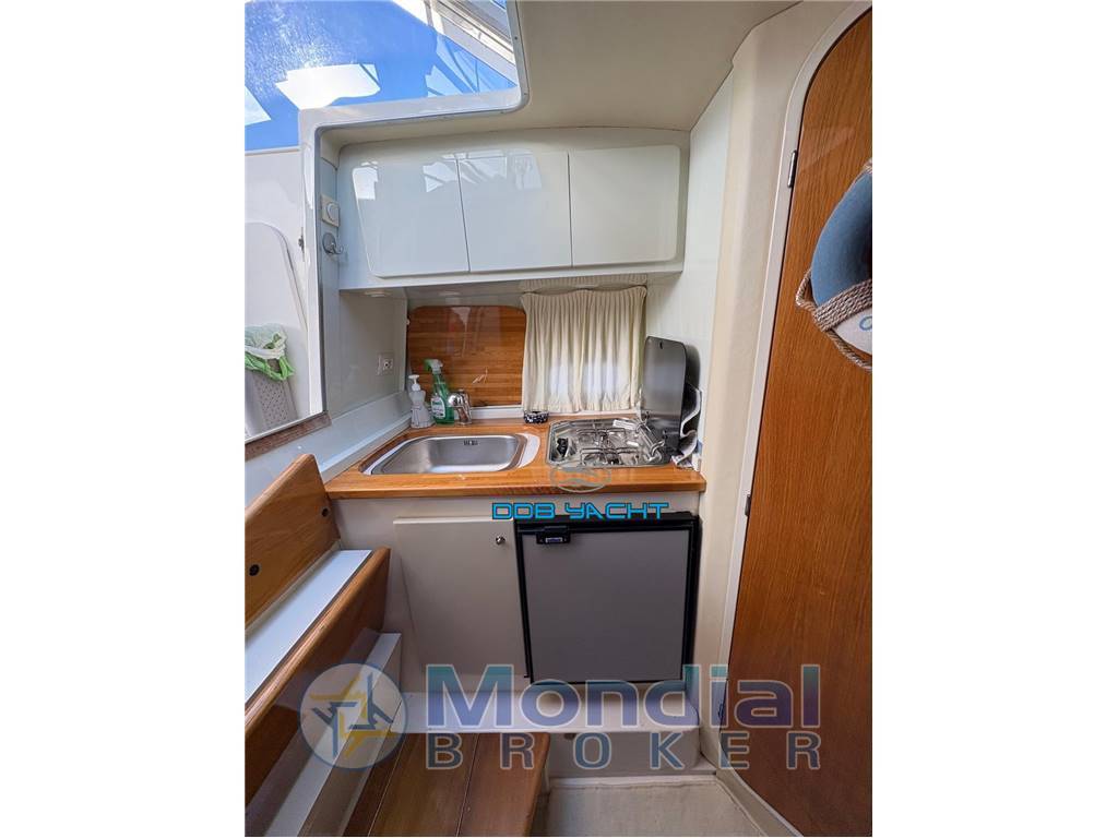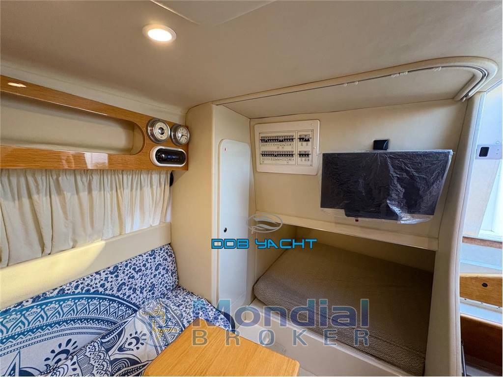 2 CABINE, 1 BAGNO: cabina armatoriale a prua, locale WC separato, dinette convertibile, cucina con lavabo, frigo ISOTHERM, piano cottura e mobili e pensili, cabina di poppa open space: ampio pozzetto di poppa con divani ad U con tavolo convertibile in prendisole, seduta pilota e co pilota in plancia di comando, ampio prendisole di prua.