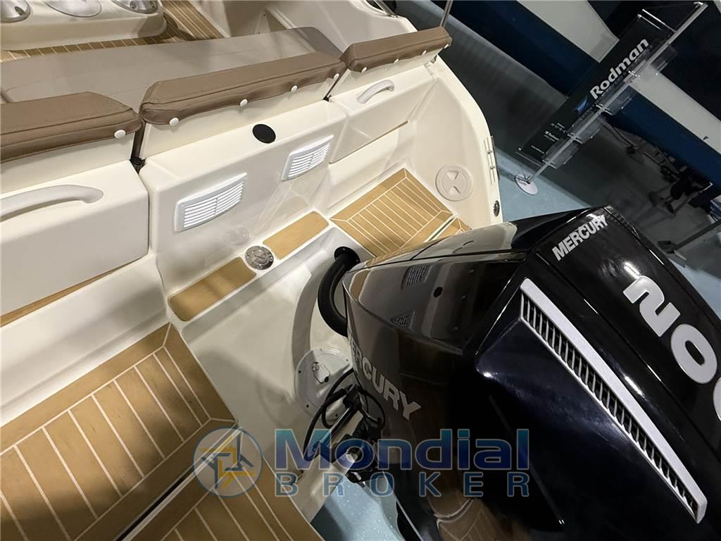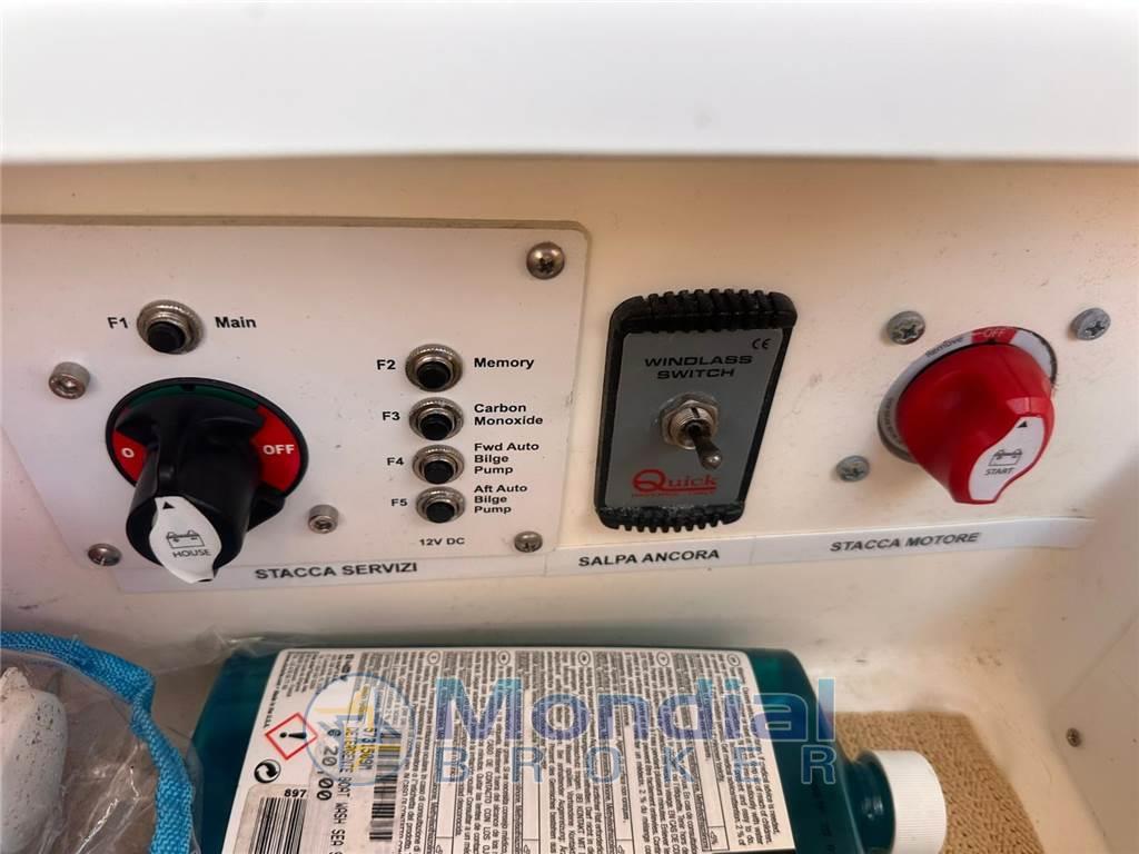 Allarme motore, Auto-Trim, 2 Batterie, Bussola, Colorazione speciale (murate), Comando motori elettronico, Doccia esterna, Ecoscandaglio, Gancio Traino per Sci Nautico, 2 Piattaforma, Plotter con antenna GPS (Garmin 923 con lettura dati ed allarmi direttamente dal motore), Pompa di sentina elettrica, Pozzetto Teak (teak sintetico Plasdek), Salpa Ancore Elettrico, Scaletta da bagno, Tavolo pozzetto