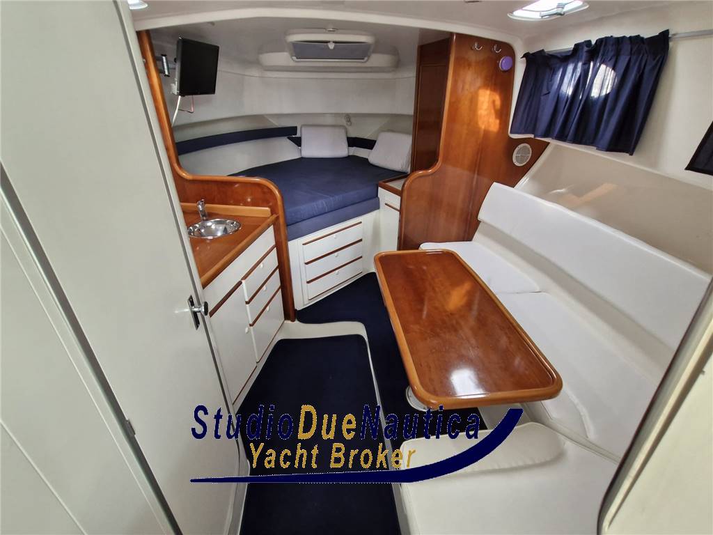 INTERNAMNETE LA BARCA SI PRESENTA MOLTO BELLA CON UNA CABINA OPEN SPACE CON LETTO A PRUA E DINETTE TRASFORMABILE, CUCINA COMPLETA DI LAVABO FUOCHI A GAS E FRIGO.