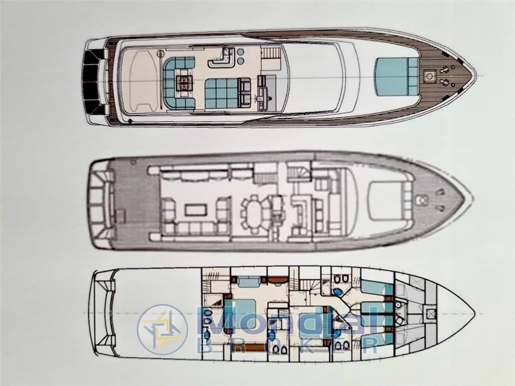 Lavori 2019/2020: accesso sala macchine da poppa - sostituzione di tutti i wc con moderni Tecma - tutte luci LED - smontaggio, verifica, equilibratura linee d'asse (assi e cavalletti) ed eliche - sostituzione delle boccole dei cavalletti - pulizia scambiatori di calore motori principali - revisione turbine - realizzazione di due sportelli laterali al pozzetto per l'accesso a bordo quando si ormeggia a murata - sostituzione di tutte le batterie (motori, servizi, gruppi elettrogeni) - sostituzione di tutti i mobili e elettrodomestici della cucina - sostituzione delle due ancore di ormeggio e relative catene - realizzazione di un bimini top fisso sulla postazione di guida del flying bridge - sostituzione di tutte le casse acque grigie e nere - ristrutturazione alloggio equipaggio - istallazione nuovo dissalatore Idromar - sostituzione manette con elettroniche - istallazione elica di poppa - nuovi caricabatterie e inverter - revisione di tutte le pompe di bordo - terza stazione di comando a poppa più quarta stazione wireless - sostituzione di tutte le prese a mare e valvole - sostituzione tenute idrauliche assi.