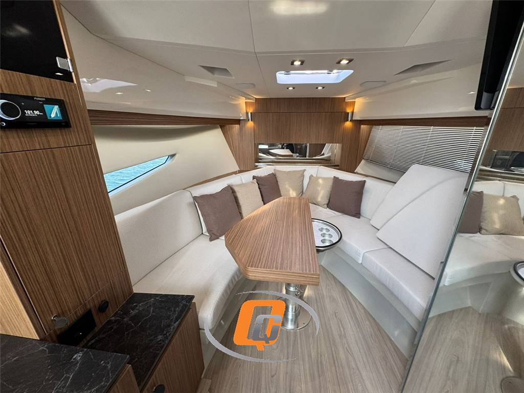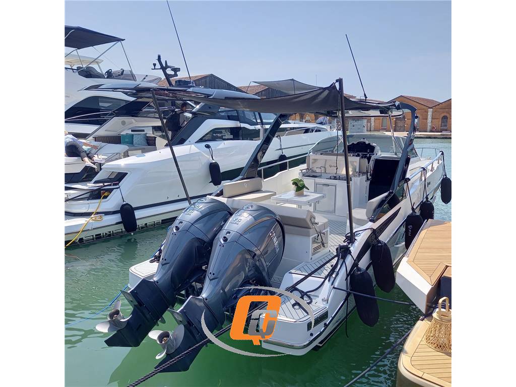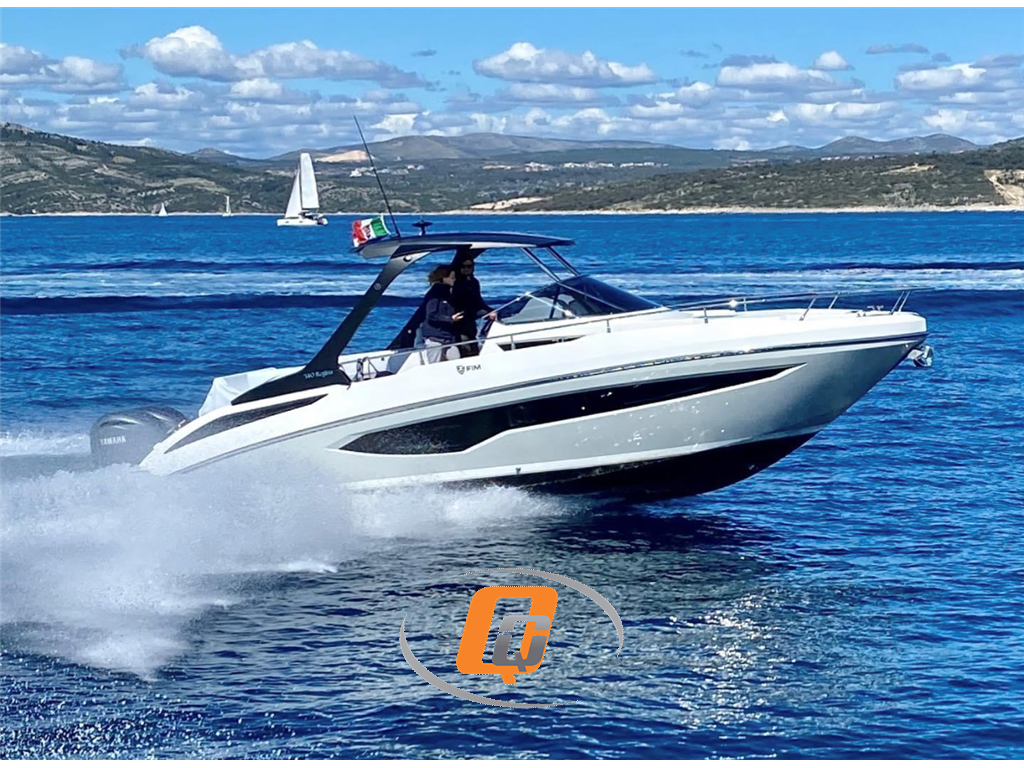 FIM REGINA 340, DEMO BOAT, IN PRONTA CONSEGNA. Visibile in showroom sul Lago di Garda. 2x 300 HP FUORIBORDO YAMAHA 4.2 L V6. CANTIERE BERGAMASCO 100% MADE IN ITALY. UTILIZZATA PER FOTO CATALOGO. NATANTE NON TARGATO. FULL OPTIONAL: Joystick di manovra Yamaha, elica di prua, aria condizionata caldo/freddo 7000 BTU, autopilota, prendisole di poppa XL con guide scorrevoli e schienale ribaltabile, cucina esterna, T-TOP nero lucido. Seadeck grigio con fughe nere in pozzetto e camminamenti laterali. Non scotta e non ha bisogno di manutenzione. Accessori: Altoparlanti, Angolo barra, Aria condizionata: 7k BTU, Autoclave, Batterie, Boiler: elettrico bivalente, Camminamenti laterali in teak: seadeck, Caricabatterie, Colorazione speciale: GELCOAT BIANCO, Contametri catena: Mz electronics, Cuscineria di poppa: prendisole con movimentazione XL (guide scorrevoli, schienale ribaltabile, cuscino per tavolo), Cuscineria di prua, Display: Raymarine Axiom, Doccia esterna, Ecoscandaglio: fishfinder 600 w, Elica di prua - bow thruster, Fornello: esterno 2 fuochi, Frigorifero interno: 65 l, Joystick: Yamaha, Luci subacquee, Piattaforma: teak, Pilota automatico, Pozzetto Teak, Radio VHF: Raymarine Ray53, Stereo: Fusion upgrade, T-Top: nero lucido, Tendalino: prendisole con pali in carbonio, TV: 24''.