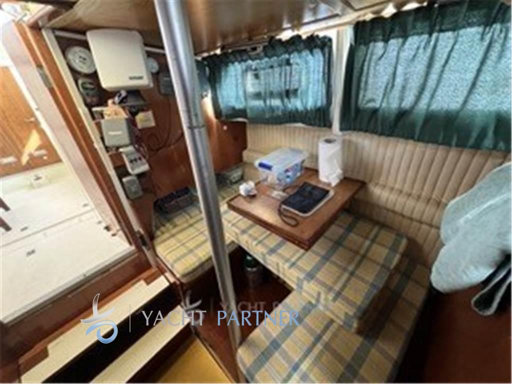 Lo scafo ampio e panciuto risponde pienamente ai ritmi della crociera, garantendo buone prestazioni e manovrabilità sia nella navigazione a motore (entrobordo diesel Volvo Penta di 36 hp, con autonomia di 50 ore), che in quella a vela.