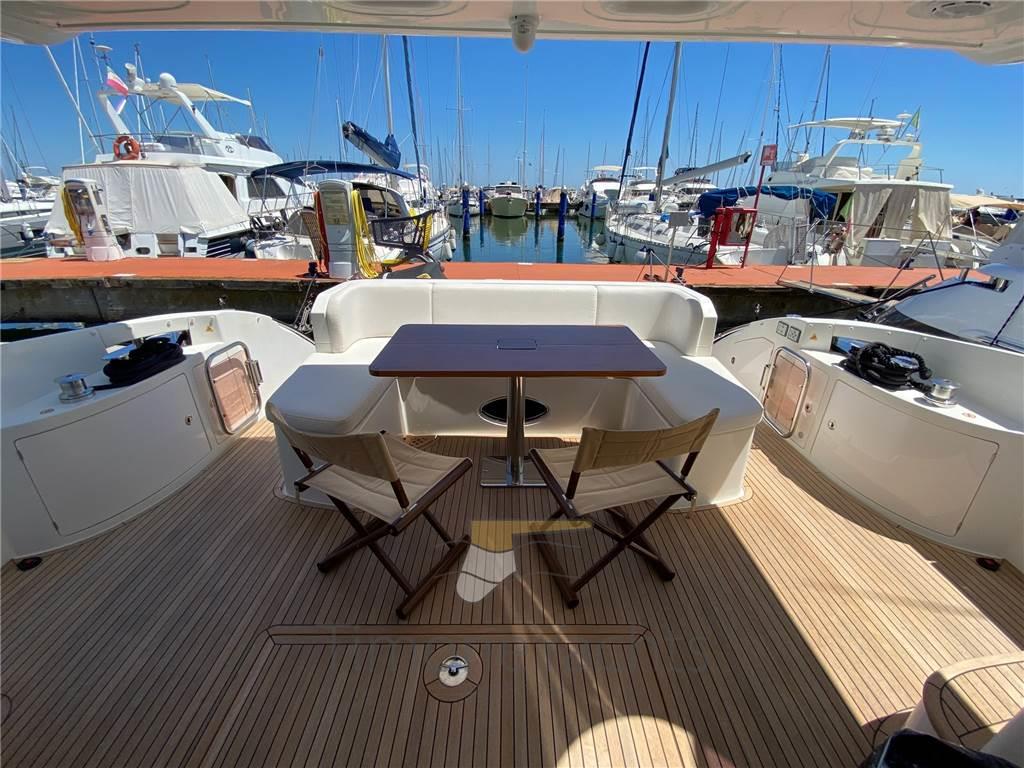 Camminamenti laterali in teak, Doccia esterna, Elica di poppa - stern thruster, Elica di prua - bow thruster, Fari fissi a poppa, Faro orientabile, Flap idraulici, Hard top, Impianto antincendio, Indicatori Flaps, Lavaggio catena, Lavandino nel Pozzetto (on fly), Luci subacquee, Passerella, Pozzetto Teak, Presa 220V banchina, Presa acqua banchina, Tavolo pozzetto, Tromba, 2 Winch tonneggio di poppa, Winch tonneggio di prua.