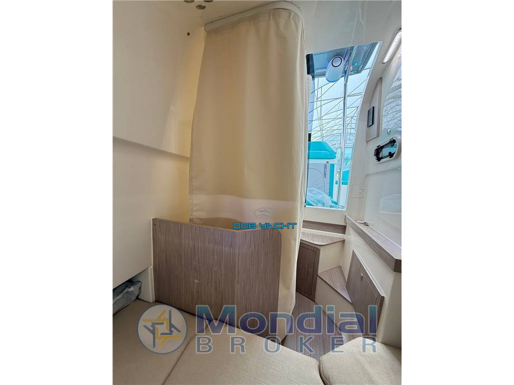 Abitabilità eccezionale, carena Hi-power V profonda (25°) per un eccellente comportamento marino, grande plancette di poppa, gavoni di grande dimensione dotati di molle a gas, dinette di poppa trasformabile in prendisole con tavolo elettrico, cabina abitabile con cuccetta per due persone e locale bagno separato con WC marino.