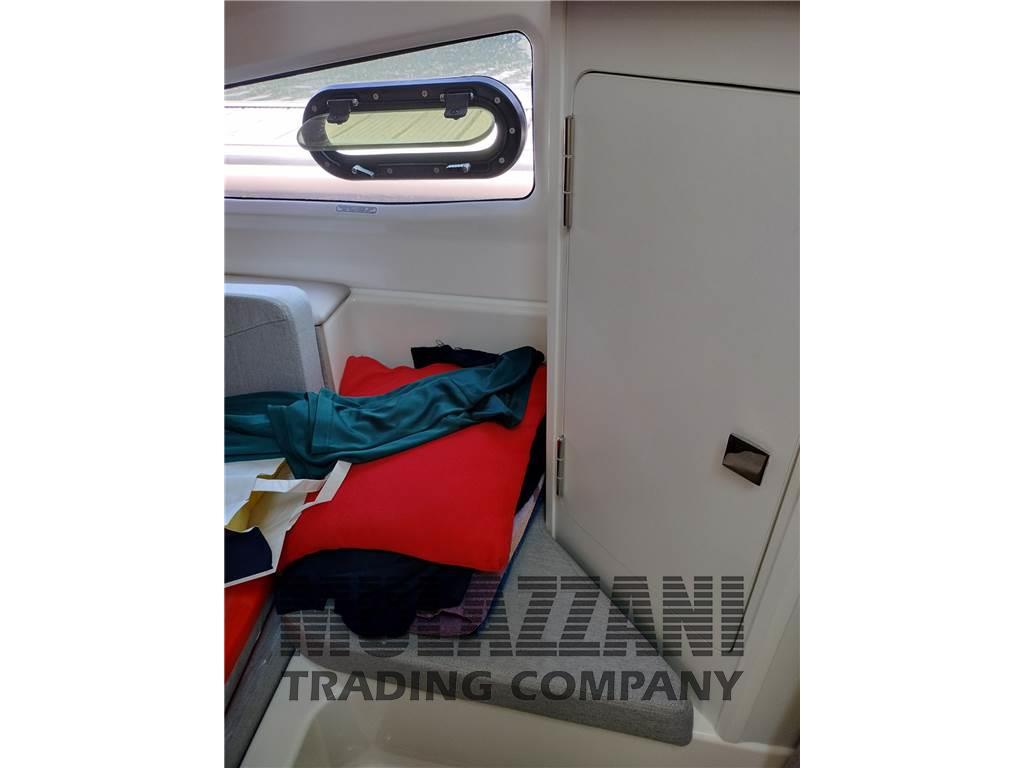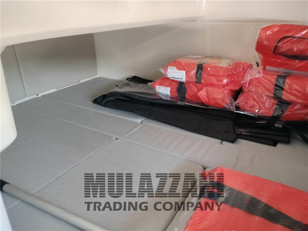 Altoparlanti, Boiler (elettrico), Cassetta di pronto soccorso, Cucina, Cuscineria completa, Cuscineria di poppa, Cuscineria di prua, Cuscineria Pozzetto, Dotazioni di sicurezza entro 12 miglia, Fornello (a gas), Frigorifero interno, Giubbetti di salvataggio, Inverter, Microonde, 3 Portacanne, Prese interne 12v, Prese interne 220v, Radio AM/FM, Salvagente anulare con cima munita di boetta luminosa, Stereo, Teli copri finestra, Tendalino (con chiusura a camper), WC marino elettrico, Zattera di salvataggio (in corso di validita), 1st Mate twin - è un pratico sistema senza fili che si avvale di chiavi indossabili e un'applicazione mobile per inviare avvisi di caduta fuori bordo, trasmettere messaggi di soccorso