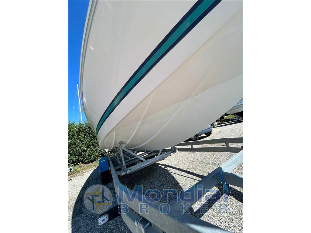 Barca dalle grandi doti sportive ma anche ottimo confort a bordo, con il grande prendisole di poppa.
