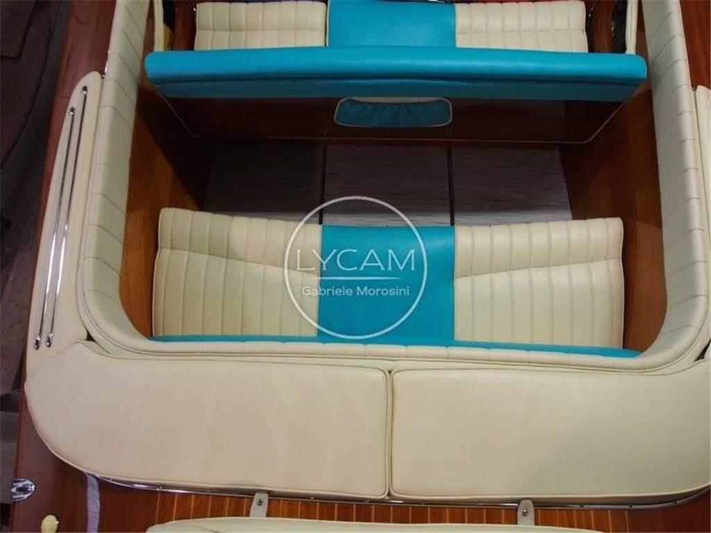 Luci di navigazione; Luce di fonda; Cuscino prendisole; Pompa sentina aut.; Remi e mezzo marinaio originali in mogano; Scaletta bagno mogano; Elica di rispetto; Capote; Telo parasole con candelieri acciaio; Palo sci nautico; Asta bandiera; Faro profondità parabrezza; Sirena; Specchietto retrovisore; Invaso in legno; Asta legno verifica benzina; Telo copertura totale; Sospendite; Dotazioni di sicurezza