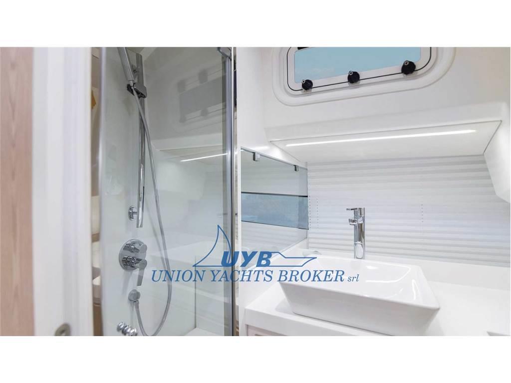 Acqua Calda, Aria calda, Clima reversibile, Impianto acque nere, Indicatore del serbatoio del carburante, Indicatore del Serbatoio dell’Acqua, Inverter (1500V), Pavimento interno in legno, Prese interne 12v, Prese interne 220v, WC marino elettrico.