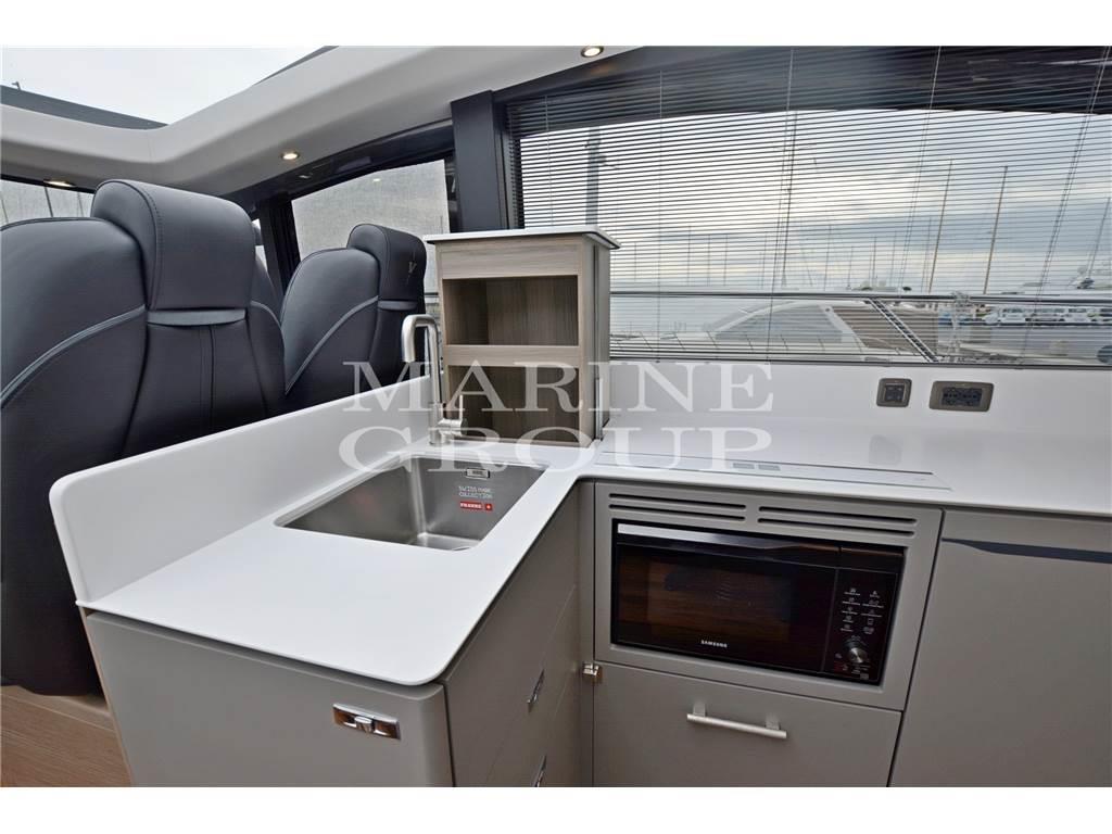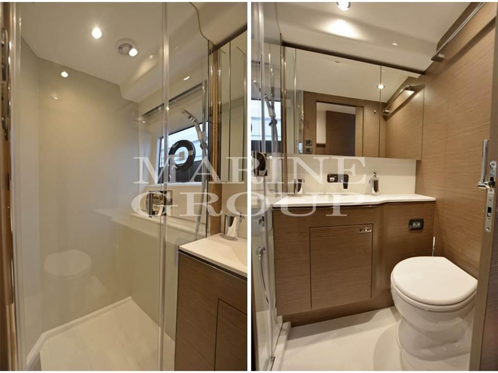 Imbarcazione unica nella sua categoria con un pozzetto dotato di un tavolo da pranzo enorme e direttamente collegato al salone grazie alla porta vetrata a scomparsa, che la rende un'imbarcazione versatile per ogni stagione. Interni in Silver Oak satinato, cucina equipaggiata e salone con divano in pelle chiara. Cabina armatoriale a centro barca con bagno ensuite - Cabina VIP matrimoniale a prua con accesso diretto al bagno fornito di doppia porta per l'ingresso anche dall'esterno - Cabina ospiti con letti a castello - Cabina equipaggio a poppa