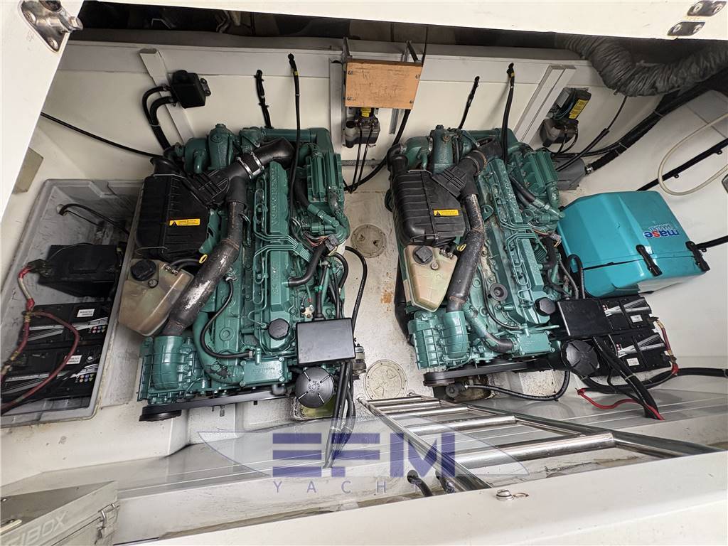 SEALINE S43 T-Top powered by twin Volvo Penta KAD300 diesels (few hours). 4 berth accommodation in two large Master cabins with two heads and two showers. Specification to include; Bowthruster, air conditioning, generator, electric windlass, a range of navigation equipment Raymarine including autopilot and plotter, trim tabs and much more! Engine service, antifoul and polish 2025. A well-equipped, well- presented example of these cavernous sports cruisers immediatly ready for sale !