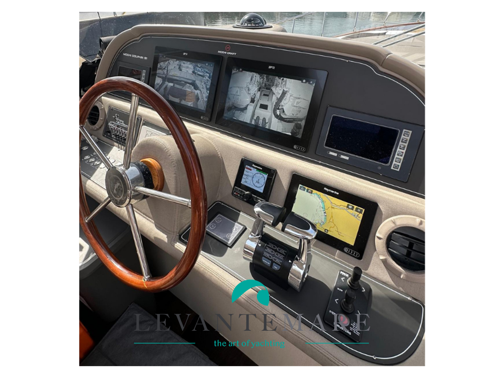 In ottime condizioni generali questo affascinante Dolphin 51 del 2006, costruito dal cantiere Mochi Craft, è stato oggetto di un refit importante negli anni. Inoltre ha ricevuto una costante manutenzione ordinaria, e straordinaria, ad opera di personale specializzato. Completamente ristrutturata, i numerosi lavori di manutenzione straordinaria comprendono il completo rifacimento di tutti gli arredi interni, la completa sostituzione di tutte le tappezzerie e della cuscineria esterna, rifacimento dell’impianto di aria condizionata, dell’impianto elettrico ed idraulico, sostituzione strumentazione di guida, sostituzione teak esterno, revisione totale di entrambi i motori di propulsione (ore zero) ed il completo restauro della sala macchine.