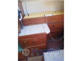 Cabina doppia prua, quadrato trasformabile, posti letto 7,bagno con wc marino, cucina, forno, frigoboat, interni mogano/teak.