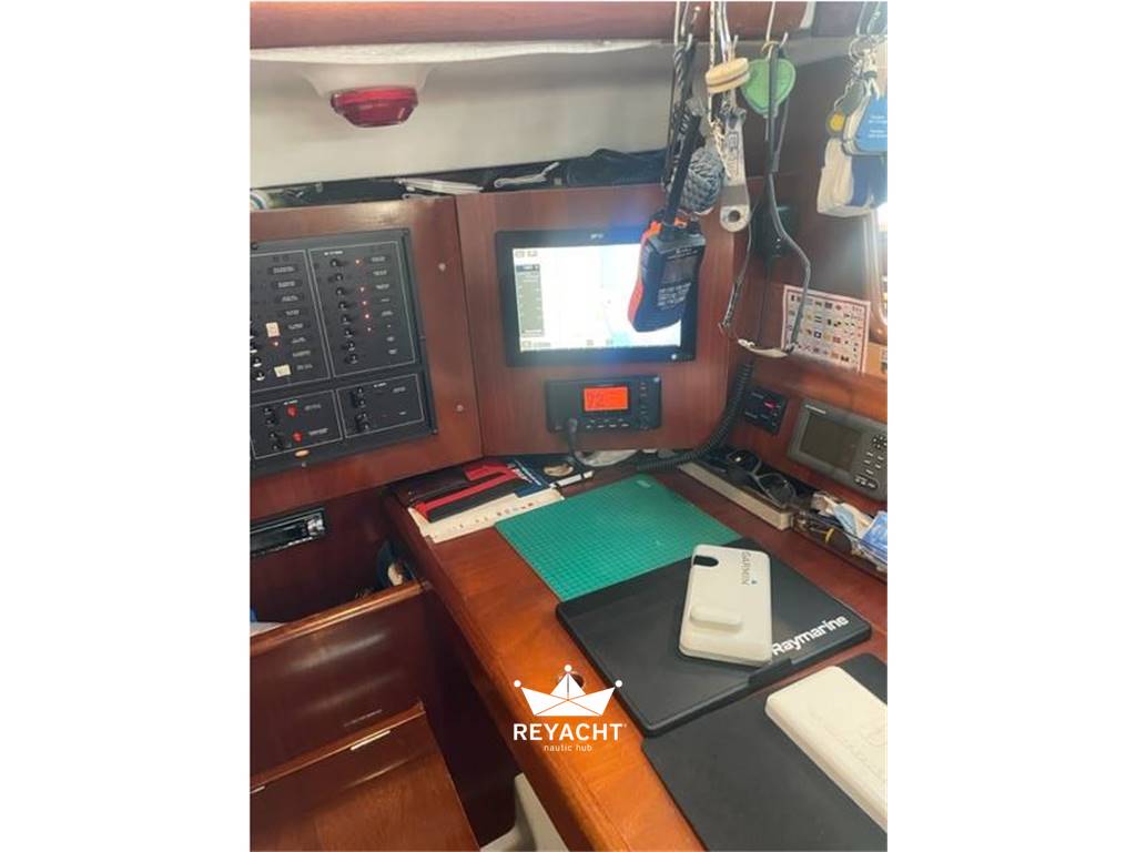 La zona carteggio dell’Oceanis 473 Clipper è tradizionale, con un piano di lavoro di buone dimensioni e molto