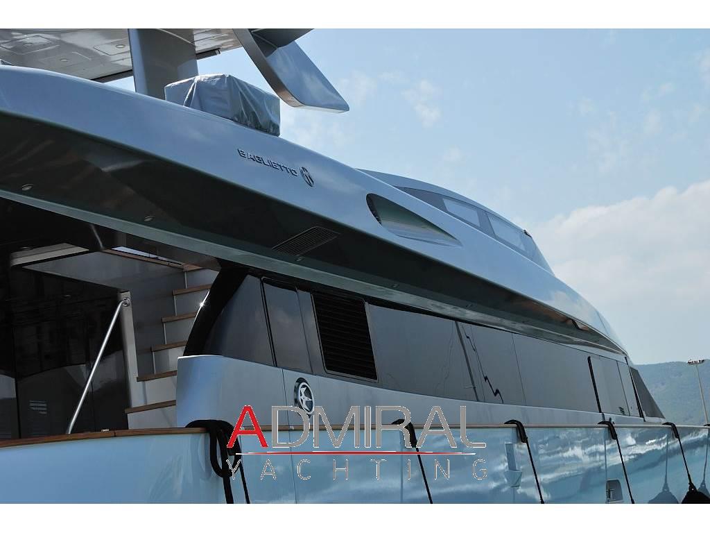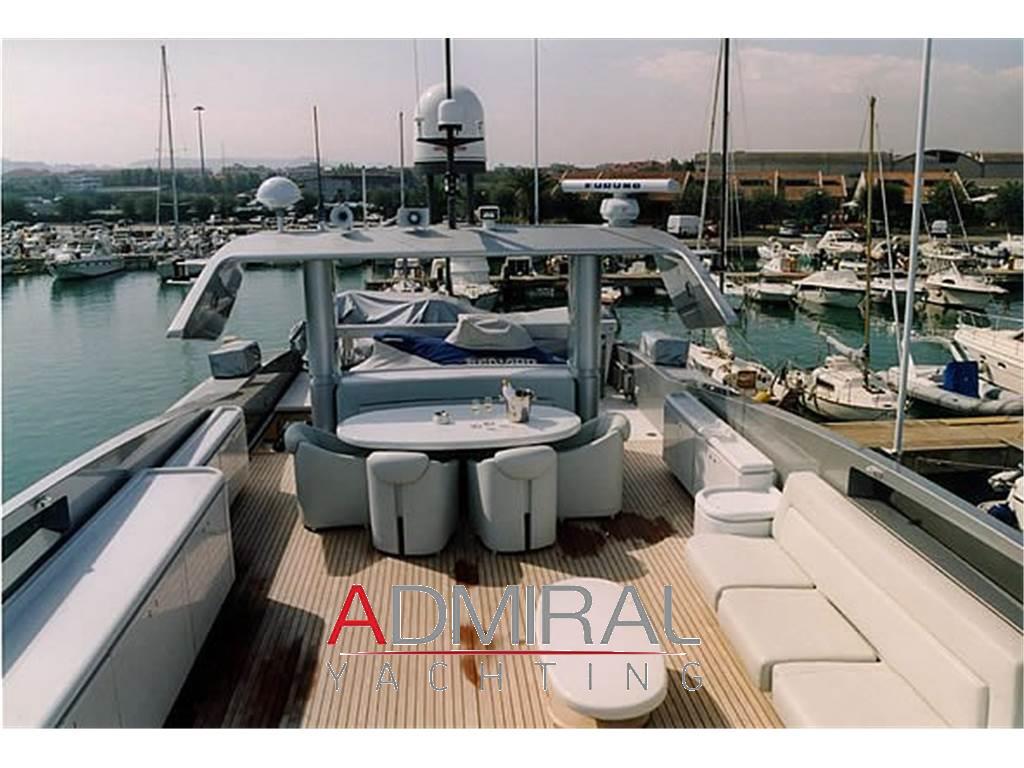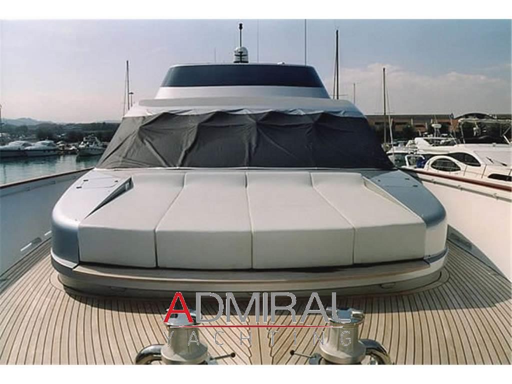 Allarme fumo/gas, Allarme motore, Allarme sentina, Ancora, Autogonfiabile, Bocche di Lupa, Camminamenti laterali in teak, Colorazione speciale, Doccia esterna, Elica di poppa - stern thruster, Elica di prua - bow thruster, Flap idraulici, Gruette per tender su fly, Impianto antincendio, Indicatori Flaps, Lavaggio catena, Luci di cortesia, Passerella, Piattaforma, Pompa di sentina automatica, Pompa di sentina elettrica, Porta laterale, Pozzetto Teak, Presa 220V banchina, Salpa Ancore Idraulico, Scaletta da bagno, Stabilizzatori, Tavolo pozzetto, Tender, Winch tonneggio di poppa, Winch tonneggio di prua.