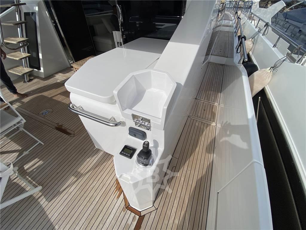 Angolo barra, Antenna radar, Auto Dynamic Trim Interceptor (Huprees anti rollio e beccheggio), Bussola, Camminamenti laterali in teak, Computer di bordo, Contametri catena, Doccia esterna (con soffione nella beach area), Ecoscandaglio, Elica di prua - bow thruster, GPS, Hard top, Impianto Aria Compressa, Joystick, Log, Luci di cortesia (+ nome barca retroilluminato.), 10 Luci subacquee (doppia tonalità colore), Passerella (a scomparsa), Piattaforma (pivottante trasformabile in beach area), Pozzetto Teak, Radar, Salpa Ancore Elettrico, Scaletta da bagno, Sedile Copilota, Stabilizzatori (Seakeeper), Tavolo pozzetto, 2 Winch tonneggio di poppa