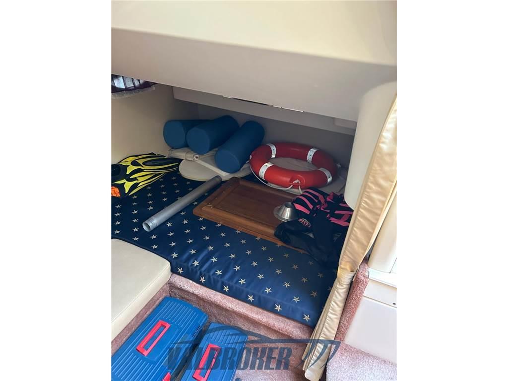Sottocoperta la dinette si trasforma in un letto, è presente una cabina a poppa, una cucina dotata di microonde, lavello e piastra a induzione ed un locale bagno è separato.