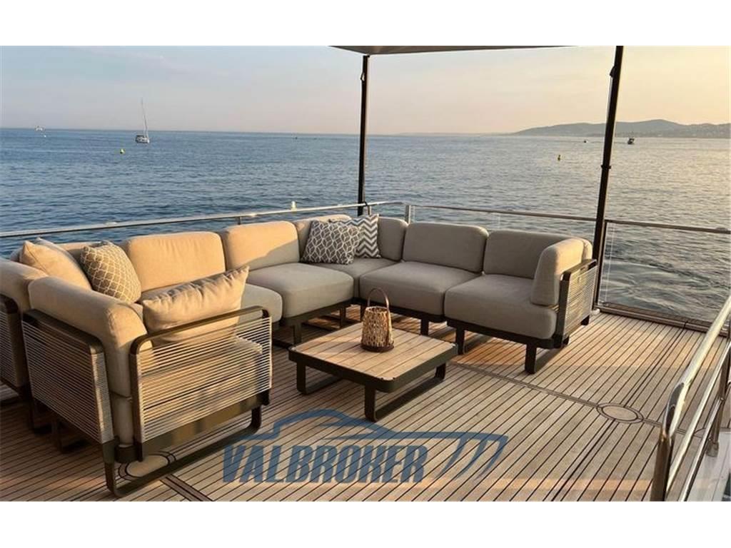 AIS, Ancora (inox ultra con catena80kg), Autoclave, Batterie, Bussola, Camminamenti laterali in teak, Caricabatterie, Doccia esterna, Ecoscandaglio, Elica di poppa - stern thruster, Elica di prua - bow thruster, Faro orientabile (doppio comando), GPS, Hard top (soft top vetroresina bianco), Luci di cortesia, Luci subacquee, Passerella (elettroidraulica a scomparsa, teak), Piattaforma (teak, idraulica), Pilota automatico, Plotter, Pompa di sentina elettrica, Pozzetto Teak, Presa 220V banchina, Radar, Radio VHF, Scaletta da bagno (integrata alla piattaforma), Tavolo pozzetto (con copertura)