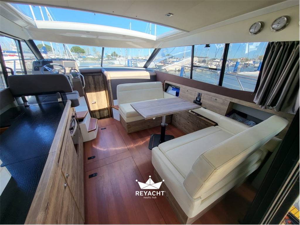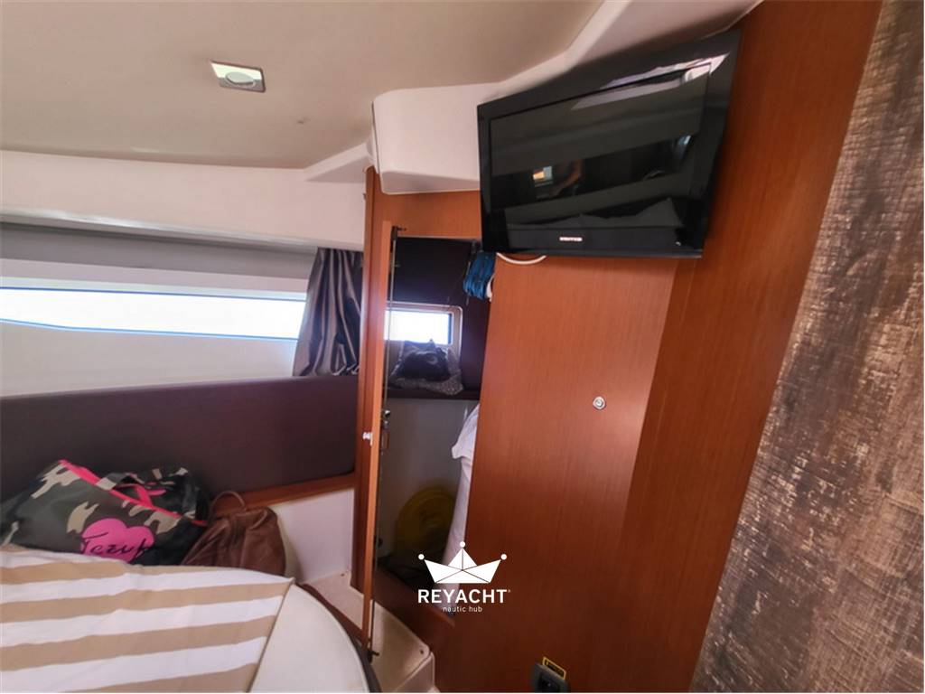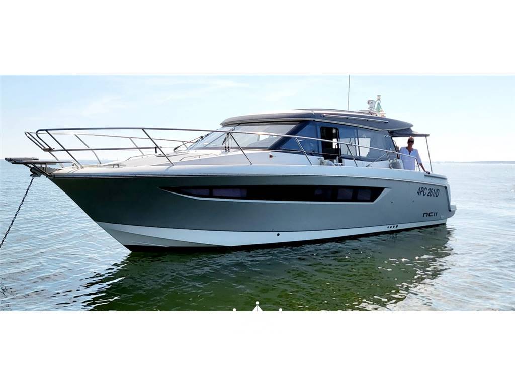 NC 11 del 2011 refittato esteticamente con wrapping interno ed esterno,dotato di hard top elettrico in cristallo con oscurante e sistema docking Volvo con JOYSTICK per manovra laterale.Descrizione interna : Dinette divisa da porta scorrevole con tre layout dei divani, cucina a murata,mobile tv,divano contrapposto,verso prua pstazione di comando con strumentazione elettronica e diva fronte via tre posti, modificabile in tavolo centrale. 1 cabina armatoriale matrimoniale ,bagno e cabina oospiti con due letti separati L’NC 11 della francese Jeanneau è un cruiser d’impostazione tipicamente nordica, che rispetto alla sorella Leader 10, barca open/hard top dalle caratteristiche volutamente più mediterranee, accomunata dalla stessa carena, propone un layout più confortevole e votato alla crociera “all season”. La sovrastruttura ha proporzioni più ampie ed è chiusa sui quattro lati per permettere la navigazione anche in condizioni meteomarine avverse, e gli interni sono caratterizzati da finiture e materiali più ricercati per ricreare quell’accoglienza tipica degli ambienti di casa.