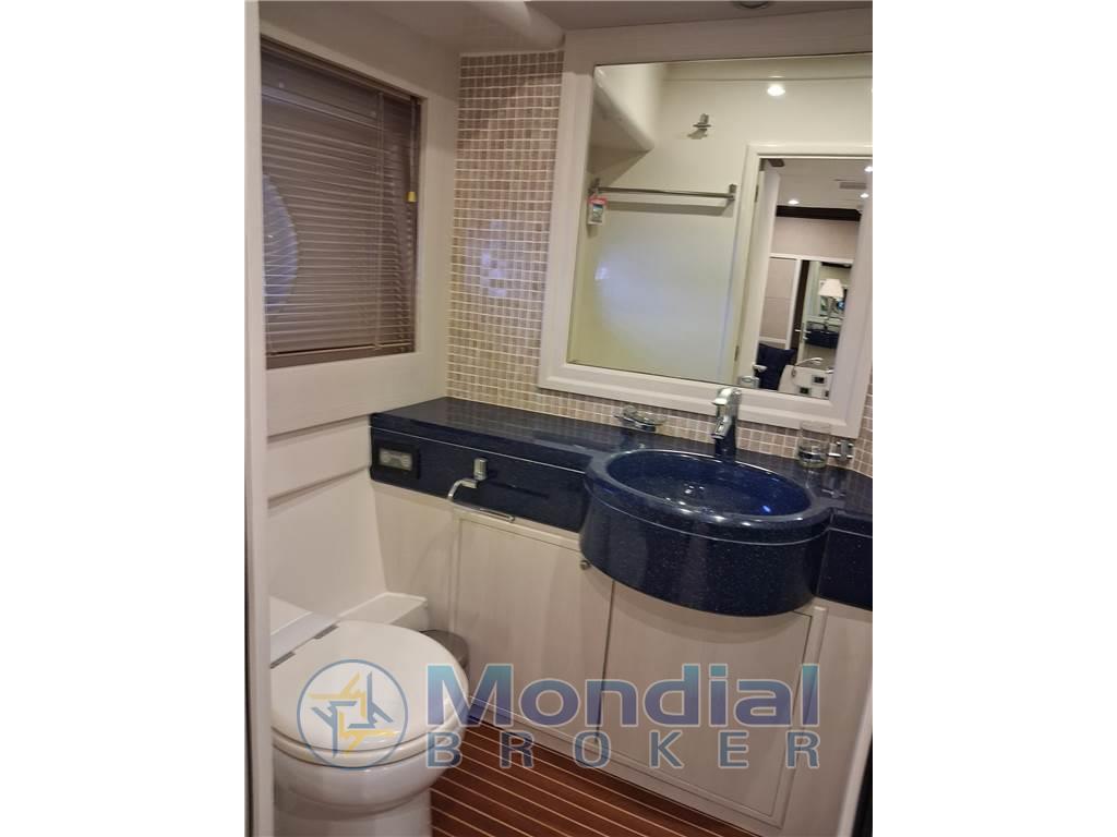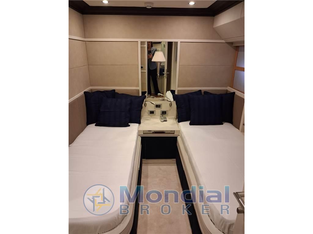 Dispone di 4 cabine matrimoniali di cui 2 con letti singoli, tutte con bagno privato, doppio salone con angolo bar, la cambusa si trova nella zona equipaggio, comodo pozzetto ed ampio Flybrige con mobile bar
