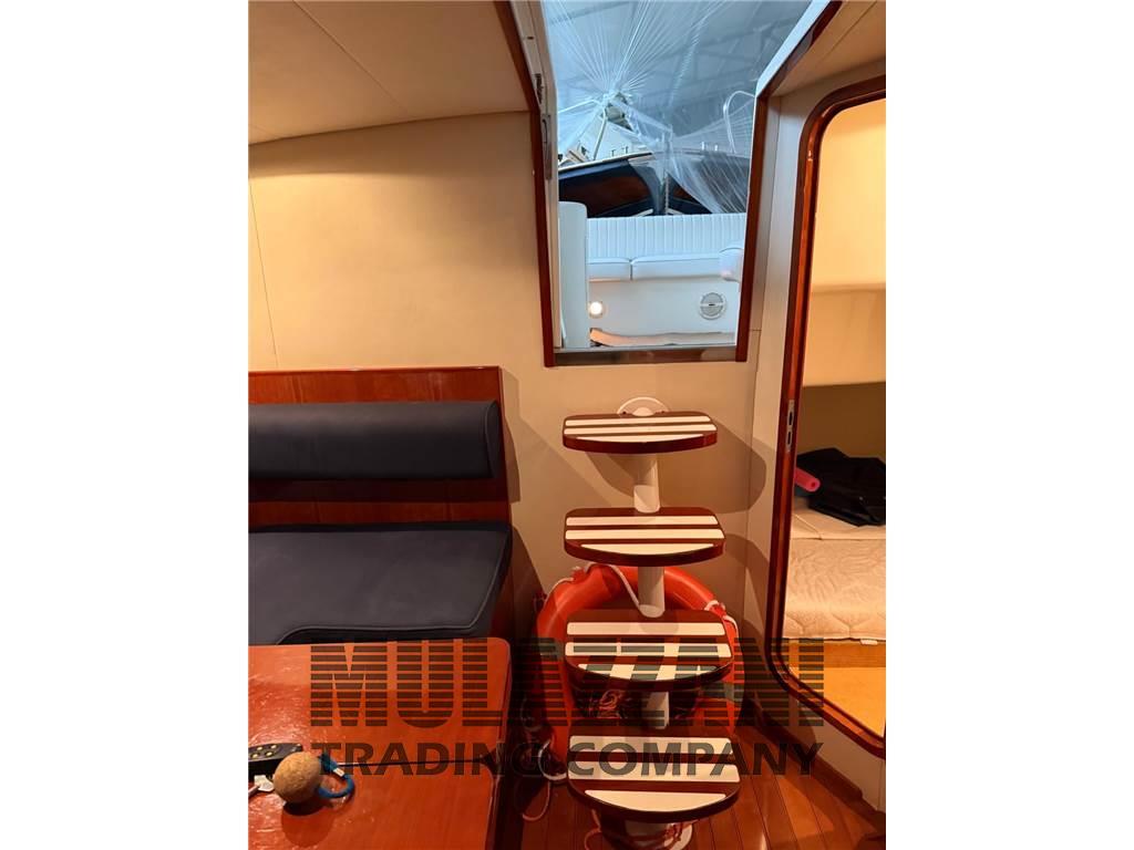 Altoparlanti, Barometro, Boiler (elettrico), Cassetta di pronto soccorso, Cucina, Cuscineria completa, Cuscineria di poppa, Cuscineria di prua, Cuscineria Pozzetto, Dotazioni di sicurezza entro 12 miglia, Fornello, Frigorifero esterno, Frigorifero interno, Giubbetti di salvataggio, Indicatore del serbatoio del carburante, Pavimento interno in legno, Prese interne 12v, Prese interne 220v, Salvagente anulare con cima munita di boetta luminosa, Stereo, Tendalino, WC marino elettrico, Zattera di salvataggio