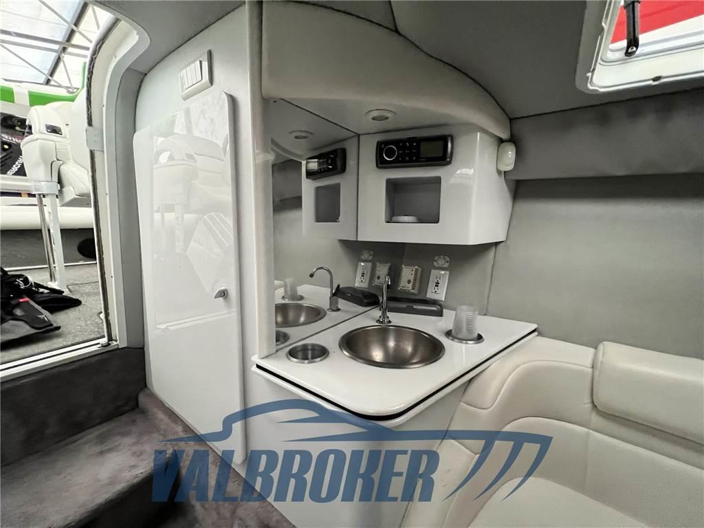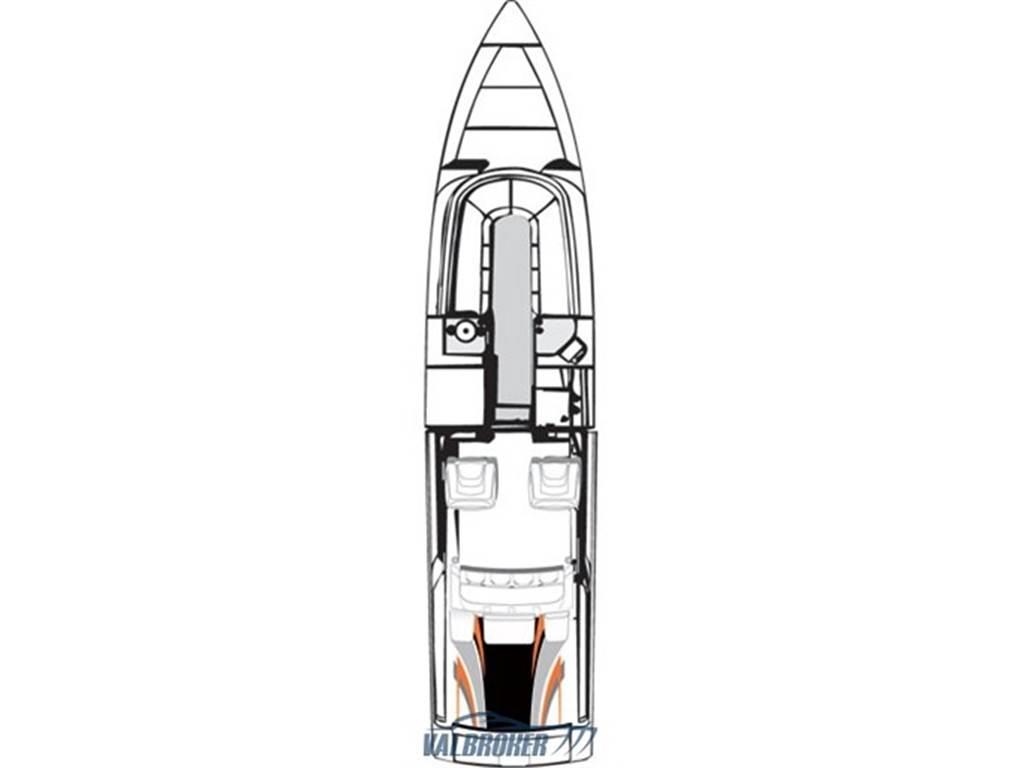 Altoparlanti, Cuscineria Pozzetto, Frigorifero interno, Stereo (Fusion), Tendalino, WC marino elettrico, Cruscotto in fibra di carbonio, pannello strumenti Livorsi, tappezzeria interna in ultra leather, sedili rinforzati