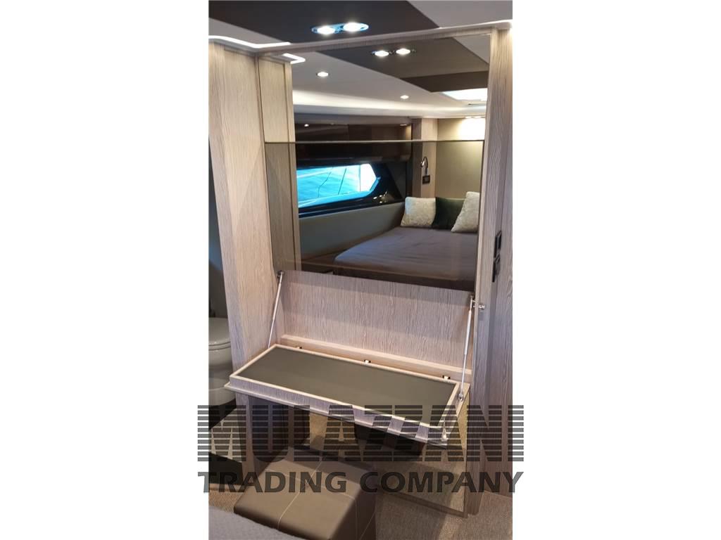 Allarme motore, Allarme sentina, Ancora, Angolo barra, Antenna radar, Autoclave, Batterie, Bussola, Caricabatterie, Comando motori elettronico, Contametri catena, Display, Doccia esterna, DSC vhf, Ecoscandaglio, Elica di prua - bow thruster, Faro orientabile, Flap idraulici, Garage per tender (con vericello), GPS, Hard top, Impianto antincendio, Indicatori Flaps, Lavandino nel Pozzetto, Luci subacquee, Passerella, Piattaforma, Pilota automatico, Plotter con antenna GPS, Pompa di sentina automatica, Pompa di sentina manuale, Porta ingresso, Pozzetto Teak, Presa 220V banchina, Presa acqua banchina, Radio VHF, Salpa Ancore Elettrico, Scaletta da bagno, Sedile Copilota, Stabilizzatori (Volvo Interceptor system), Tavolo pozzetto (abbattibile), Tromba, Winch tonneggio di poppa