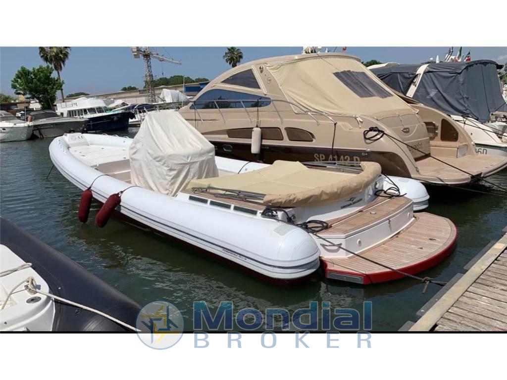 Gommone in ottime condizioni, motori Mercruiser 6.2L DTS appena sostituiti nuovi compresa trasmissione Entrofuoribordo Bravo 3 anche le manette elettroniche sono nuove e le eliche in acciaio, gavone vano di prua elettrico, divisione interna gavone di prua con ghiacciaia da 200lt, bagno con doccia e spogliatoio, cucina esterna con fornello, lavandino e frigo.