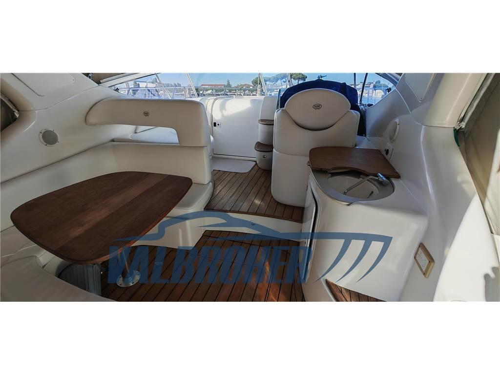Aria condizionata (Caldo/freddo), Boiler, Cappottina (Camper), Cucina, Frigorifero interno, Microonde, Stereo, Tendalino, TV, WC marino elettrico, lavori eseguiti: verniciatura +teak +cuscineria rinnovata, sostituite turbine , revisione iniettori, revisione scambiatori , para strappi eliche , rimessaggio invernale al coperto , tagliandi regolari da officina autorizzata Volvo Penta .