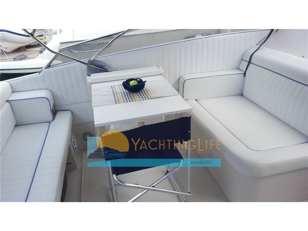 Altoparlanti, Aria condizionata, Boiler, Cappottina, Cucina, Cuscineria completa, Frigorifero interno, Impianto acque nere, Piastra in vetroceramica, Prese interne 12v, Prese interne 220v, Stereo, Telo copriconsolle, WC marino elettrico