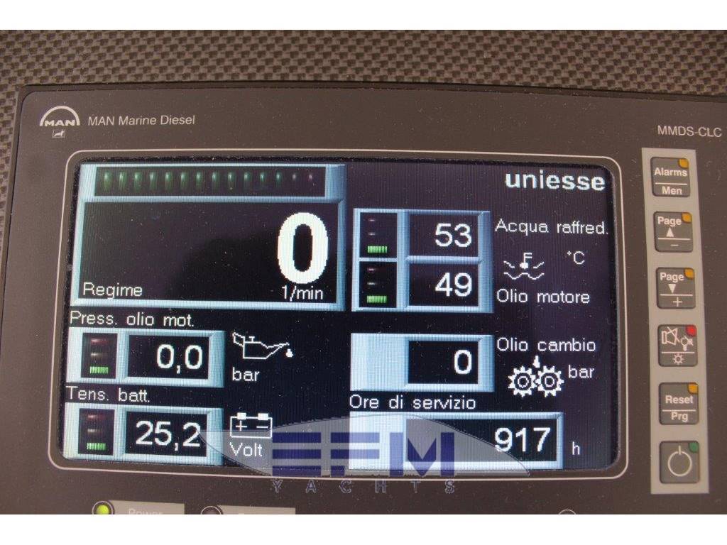 Strumentazione Raymarine completa: Gps plotter cartografico Raymarine a colori c 120 - ecoscandaglio - vhf Raymarine con dsc - tridata st 600 Raymarine - autopilota st 60 Raymarine - Antenna Sat -faro elettrico - stereo cd con dvd - impianto con decoder - 2 televisori LCD Samsung in dinette e Armatore -elica di prua - manette elettroniche ZF - doppio Computer MAN gestione motori - flaps idraulici - salpancora con telecomando a prua e rinvio in timoneria -
