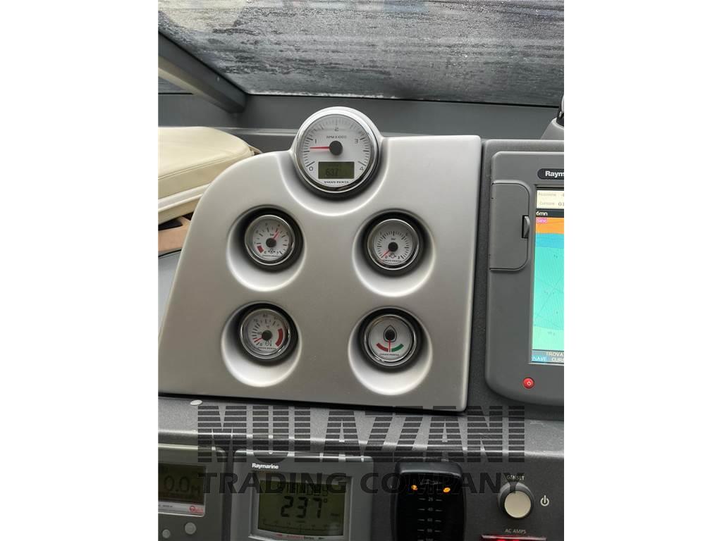 Allarme motore, Allarme sentina, Ancora, Angolo barra, Antenna radar (Raystar 125), Autoclave (20l), 7 Batterie (nuove marzo 2024), Bussola, Caricabatterie, Colorazione speciale (wrapping murate rosso bordeaux), Comando motori elettronico (Manette elettroniche), Computer di bordo, Contamiglia, Cronometro, Display, Doccia esterna, Ecoscandaglio, Elica di prua - bow thruster, Faro orientabile, Flap elettrici, GPS (Raymarine Tridata ST60), Hard top (elettrico), Indicatori Flaps, Joystick, Lavandino nel Pozzetto, Log (Raymarine Tridata ST60), Luci di cortesia, Passerella (idraulica), Piattaforma, Pilota automatico (Raymarine ST6001 Plus), Plotter con antenna GPS (Raymarine), 3 Pompa di sentina automatica, 2 Pompa di sentina manuale, Porta ingresso, Pozzetto Teak, Presa 220V banchina, Presa acqua banchina, Radar, Radio VHF (Shipmate RS81), Salpa Ancore Elettrico, Scaletta da bagno, Tavolo pozzetto (abbattibile), Tromba