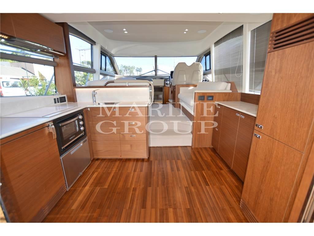 Cucina molto comoda posizionata all'ingresso con mobili super accessoriata - Grande salone con doppio divano e mobile tv a scomparsa - Cabina armatoriale a centro barca con cassettiera, divanetto e bagno ensuite - Cabina Vip a prua con letto matrimoniale - Cabina ospiti con letti a castello - Bagno ospiti con doppia porta di accesso diretta dalla Vip e dal disimpegno