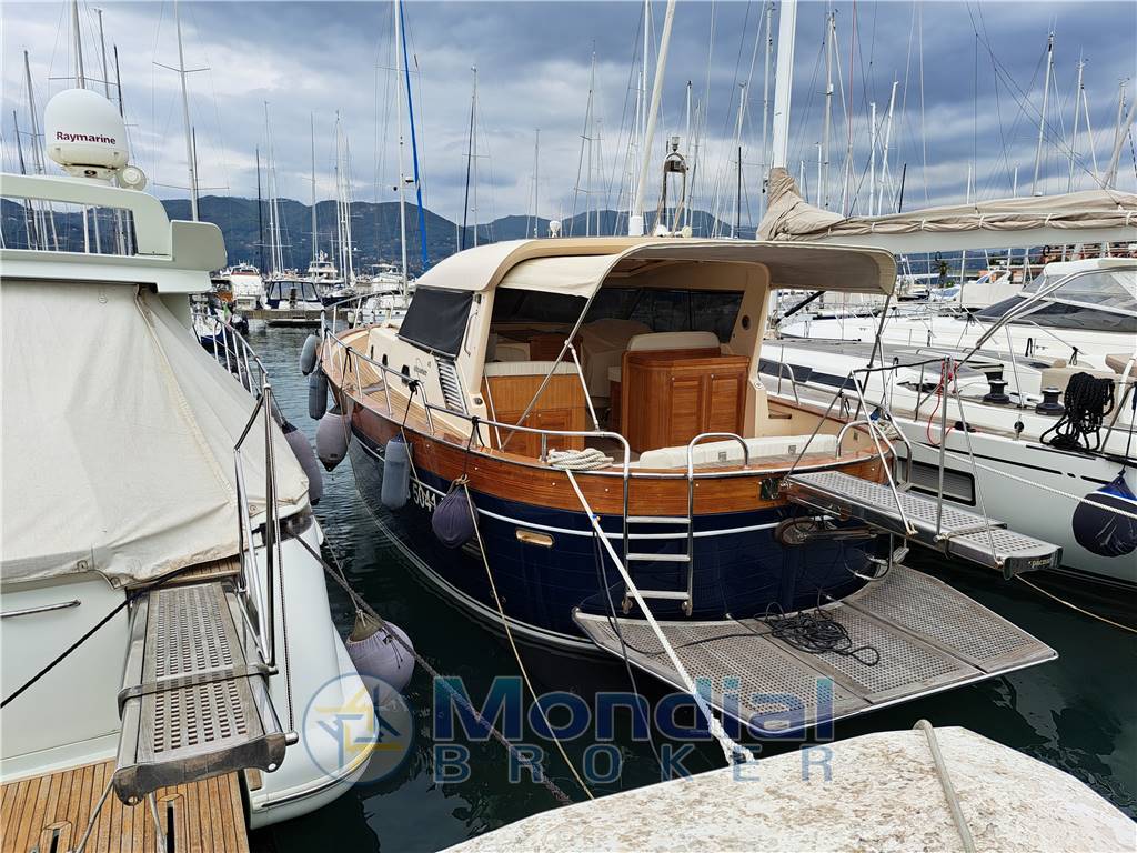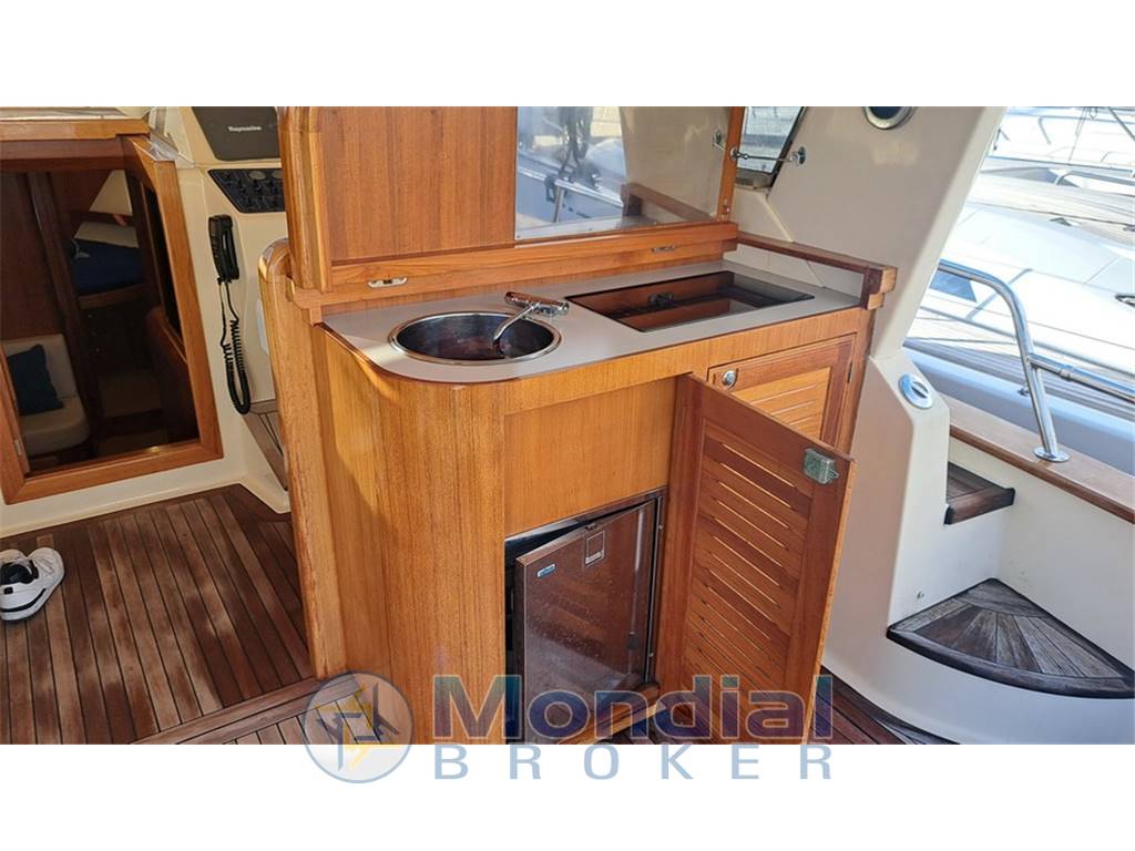 Ottime condizioni . Scafo blu riverniciato. Coperta in teak recente -Due cabine, due bagni + dinette trasformabile, cabina equipaggio non allestita - Aria condizionata doppio ciclo – passerella idraulica – generatore 9 kw