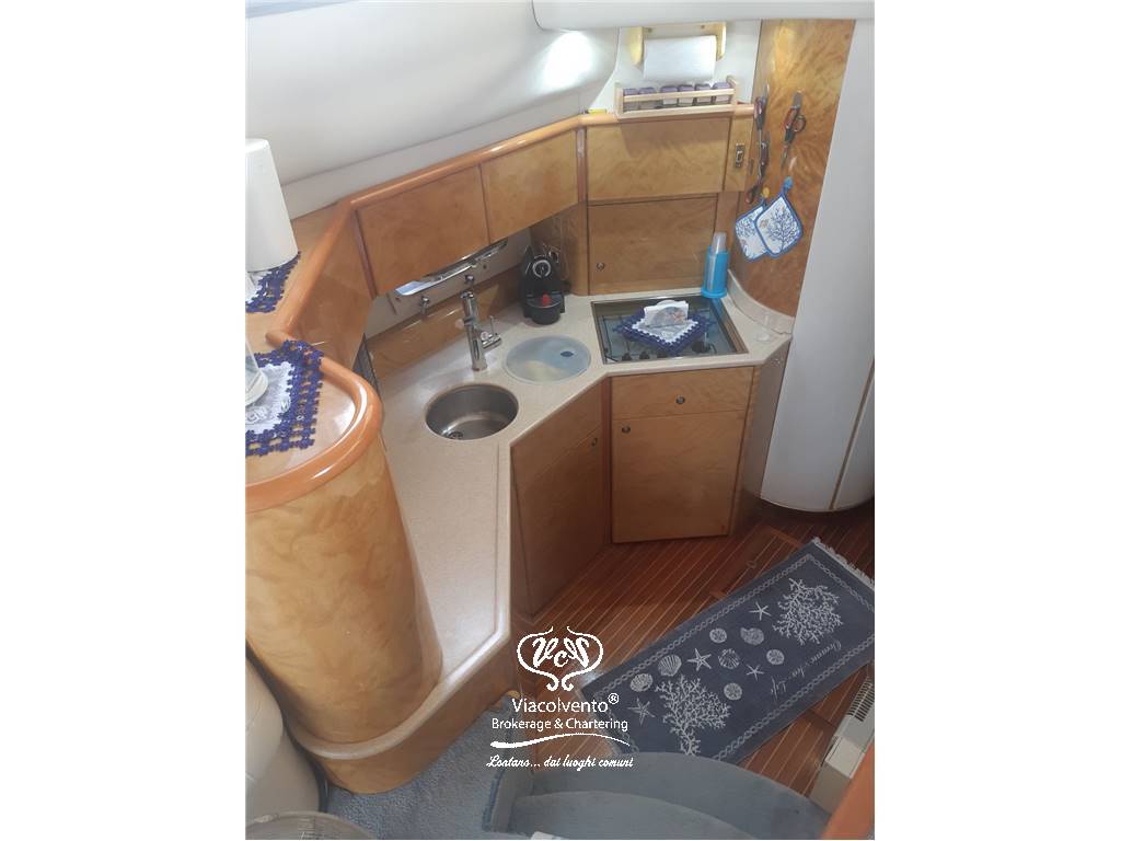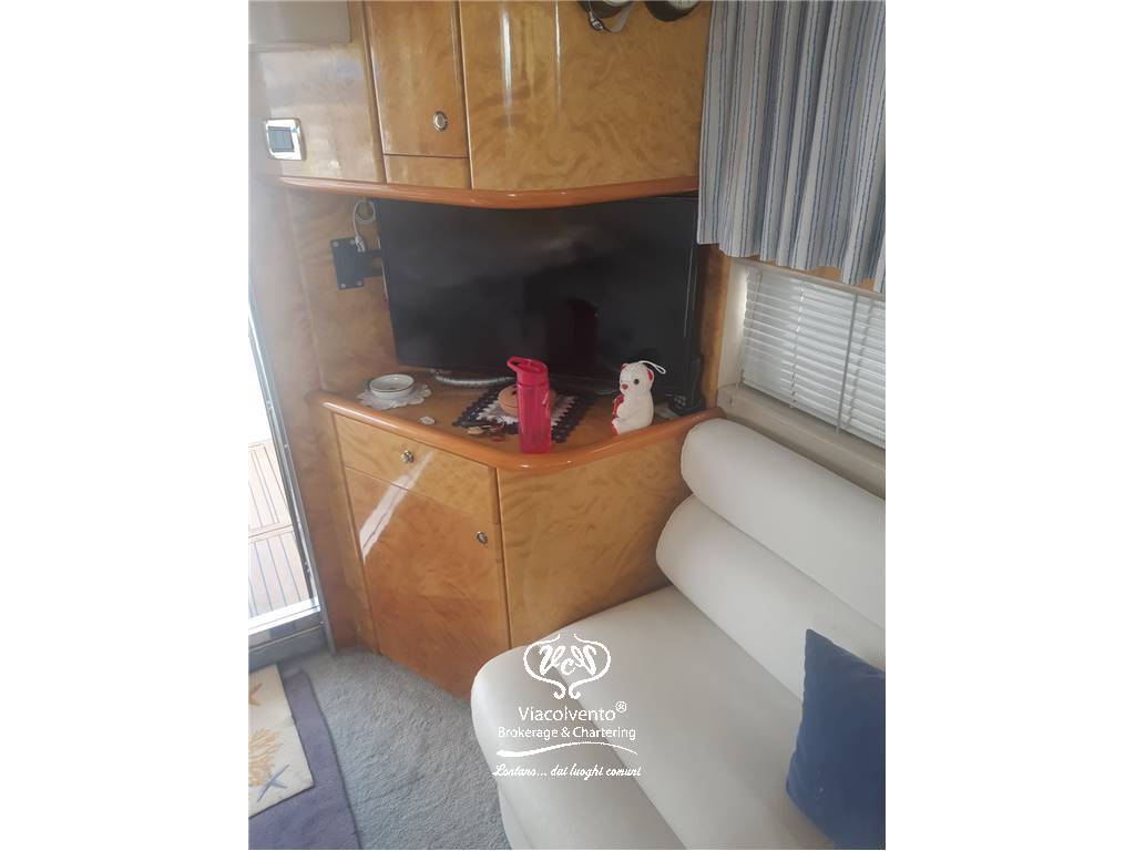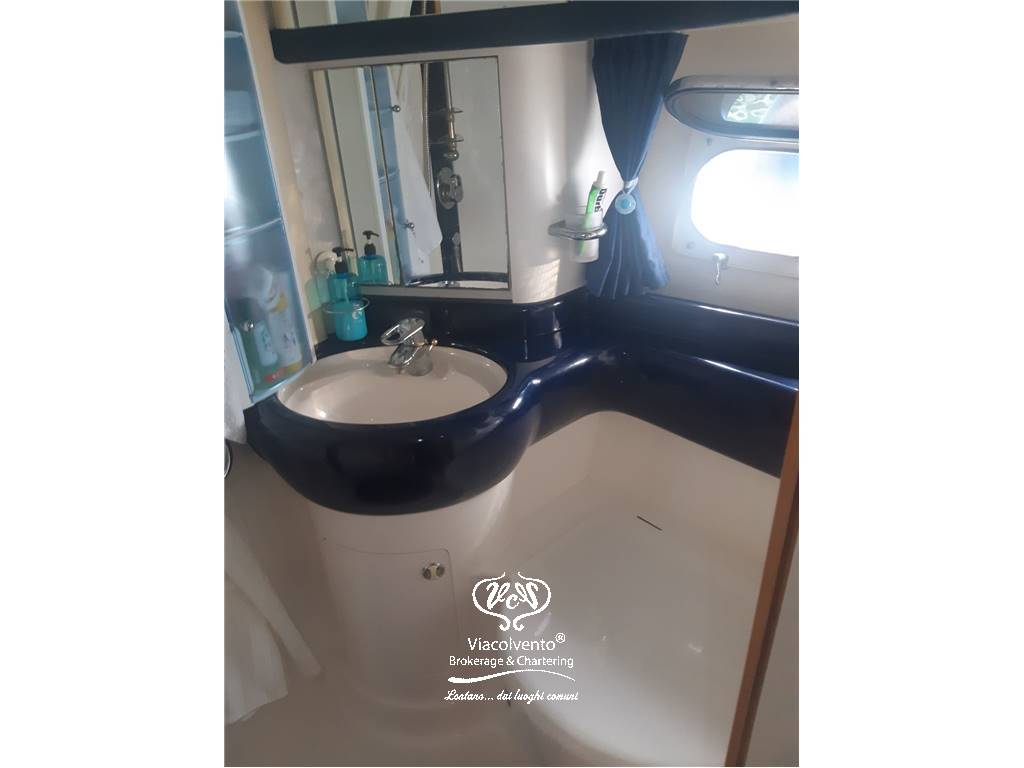 INTERNI MOLTO CURATO CON CABINA ARMATORIALE LETTO AD ISOLA E BAGNO PRIVATO, SECONDA CABINA DOPPIA LETTI IN PIANO E SECONDO BAGNO, IMPIANTO TV CON TELEVISORI DINETTE E CABINE, STERO IMPIANTO BOSE, CRIMATIZZATORE REVERSIBILE CALDO/FREDDO, WC ELETTRICI, LAVATRICE, CUCINA COMPLETA DOPPIO FRIGO E FREEZER, CUSCINERIA OTTIMO STATO, IMPIANTO ACQUA GASSATA MICROFILTRATA, MATERASSI NUOVI IN LATTICE.