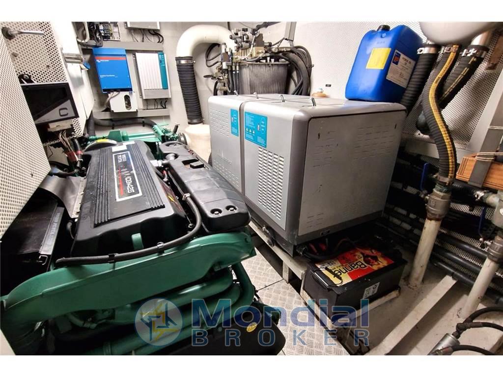 Pedana di poppa tender lift - elica di prua e di poppa idrauliche - pinne stabilizzatrici - Yacht Controller - gruppo elettrogeno Mastervolt 17 kW - aria condizionata Climma caldo/freddo - antenna TV SAT - TV - piano cottura elettrico 4 fuochi - frigo - freezer - lavastoviglie - lavasciuga - cantinetta vini - forno combinato microonde - vasca idromassaggio Jacuzzi a prua - dissalatore.