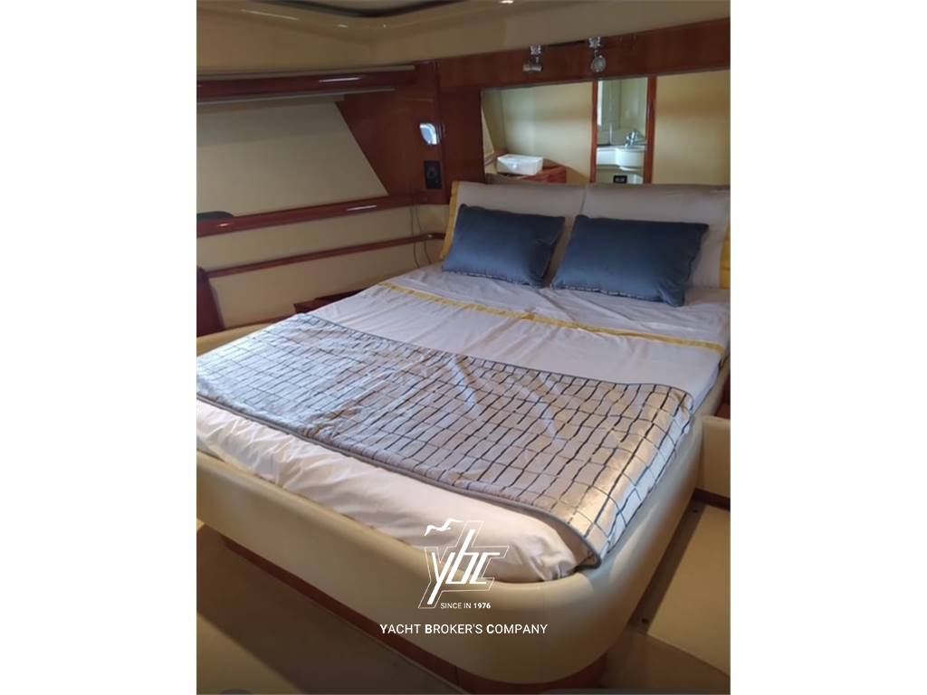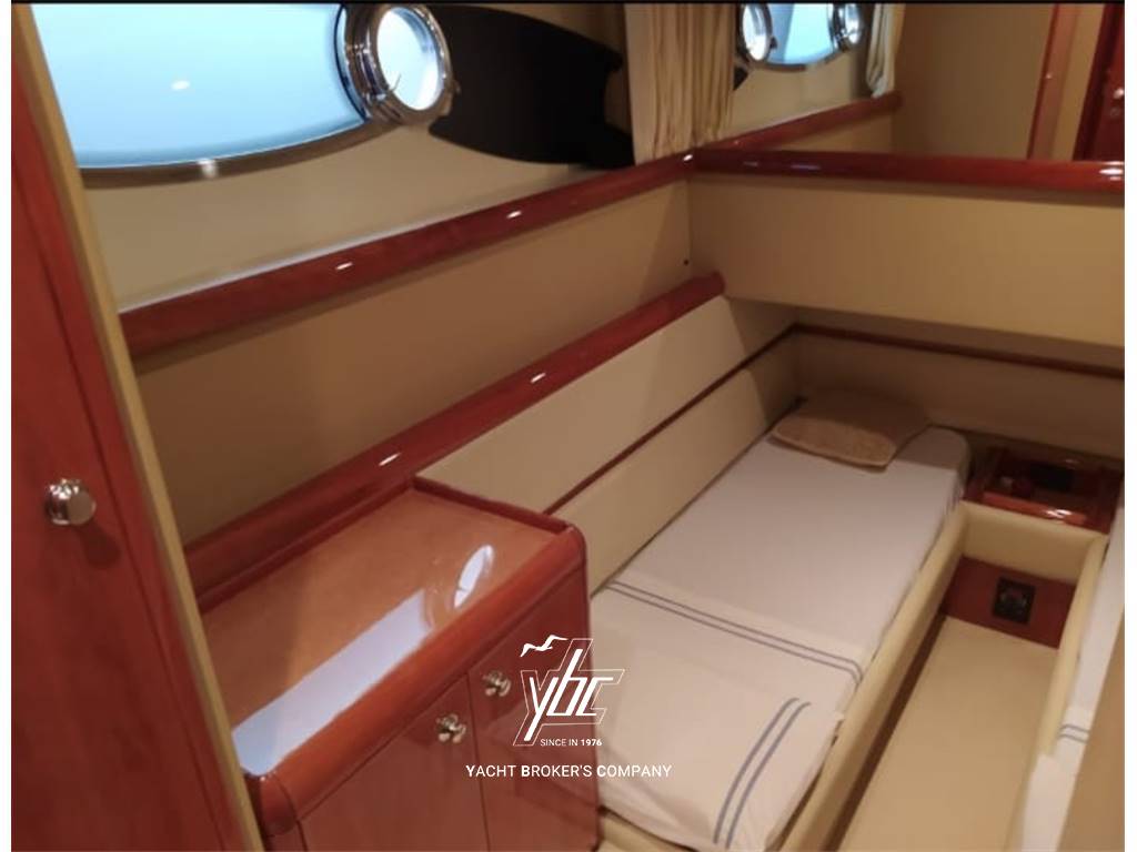 La zona notte è composta da una cabina matrimoniale a centro barca, asimmetrica, con grande bagno en suit e generoso box doccia separato. Seconda cabina matrimoniale a prua con bagno en suite completo e box doccia separato. Terza cabina a letti singoli in piano con ingresso diretto al terzo bagno ospiti.
