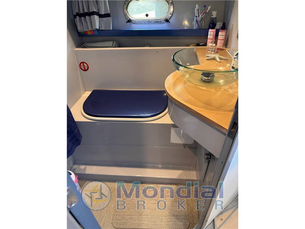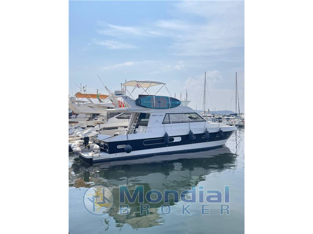 Ferretti 39 anno 1990 ore di moto 900. tre cabine e due bagni , salone con cucina al piano , tre frigoriferi nuovi , uno sotto cucina , uno all'ingresso a cassetto e uno portatile su fly , forno microonde nuovo , pozzetto in teak, divani salone nuovi, moquette nuova , rubinetteria nuova con top bagni e lavello in vetro , gruppo elettrogeno nuovo 4,5 kw, passerella elettroidraulica , plancetta allungata , tender e motore , 4 luci sub bicolore , nome retroilluminato , tutte le luci interne a led , luci segna passo in pozzetto ,impianto wi-fi , wrapping su murate e specchiatura su vetri
