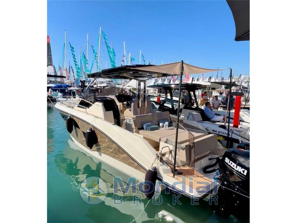 Day cruiser versatile, dominato da un robusto T-Top, con comode sedute e prendisole.