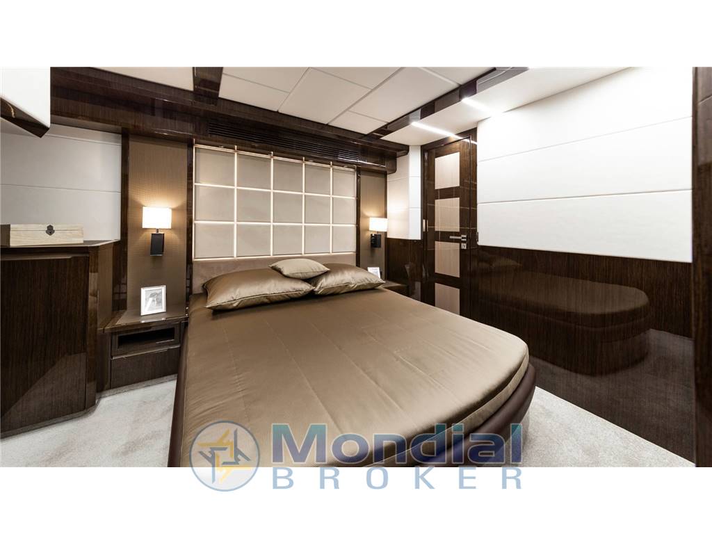 There are 4 guest cabins on board for 8 guests, and 1 aft cabin for 2 crew members. The interior is finished in exclusive high-gloss caravaggio walnut.