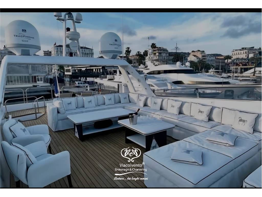 YACHT SEMIDISLOCANTE IDEALE PER CHARTER, FULL-OPTIONAL, IMPORTANTE REFIT 2020 CON RIFACIMENTO MOTORI ED IMPIANTI, ELLESTIMENTI INTERNI ED ESTERNI, NEL 2022 REFIT STRUMENTAZIONE DI BORDO E SOSTITUZIONE DI UNO DEI DUE GENERATORI KOHLER RISPETTIVAMENTE 45 E 35 KW, 2023 NUOVO DISSALATORE 200 LT/H, LAVARICE ED ASCIUGATRICE, PONTE TEAK 2018. QUATTRO GRANDI CABINE OSPITI E LOCALE EQUIPAGGIO SEPARATO, AMPIO SALONE E FLY ATTREZZATO, DIVERSI TOYS