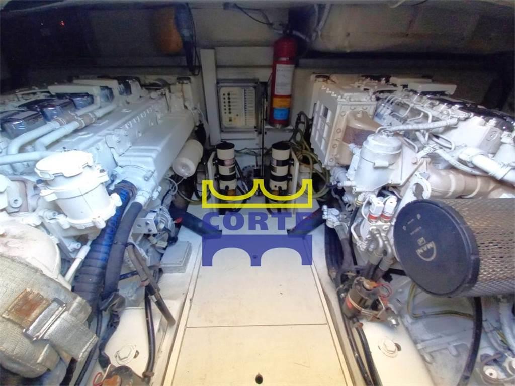 Allarme motore, Allarme sentina, Ancora, Angolo barra, Antenna radar, Autoclave, Batterie, Bussola, Camminamenti laterali in teak, Caricabatterie, Colorazione speciale, Comando motori elettronico, Computer di bordo (Man), Contamiglia, Display, Doccia esterna, Ecoscandaglio, Elica di prua - bow thruster, Faro orientabile, Flap idraulici, Garage per tender, 2 GPS (Raymarine touch screen, recenti), Hard top (elettrico), Impianto antincendio, Lavandino nel Pozzetto, Luci di cortesia, Pannelli Solari, Passerella (idraulica a scomparsa), Piattaforma (di poppa in teak), Pilota automatico, Plotter (con display a colori GPS), Plotter con antenna GPS, Pompa di sentina automatica, Pompa di sentina elettrica, Porta ingresso, Pozzetto Teak, Presa 220V banchina, Presa acqua banchina, Radar, Radio VHF, Salpa Ancore Elettrico (nuovo), Scaletta da bagno, Tender, Tromba, Winch tonneggio di poppa, Winch tonneggio di prua, Yacht controller